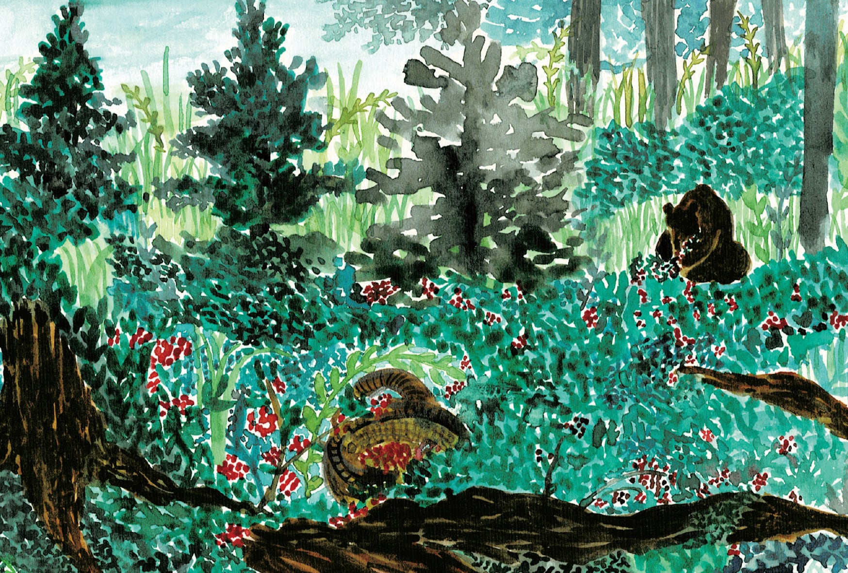 カレンダーのために描いた絵と染め布の一部をポストカードにしました。