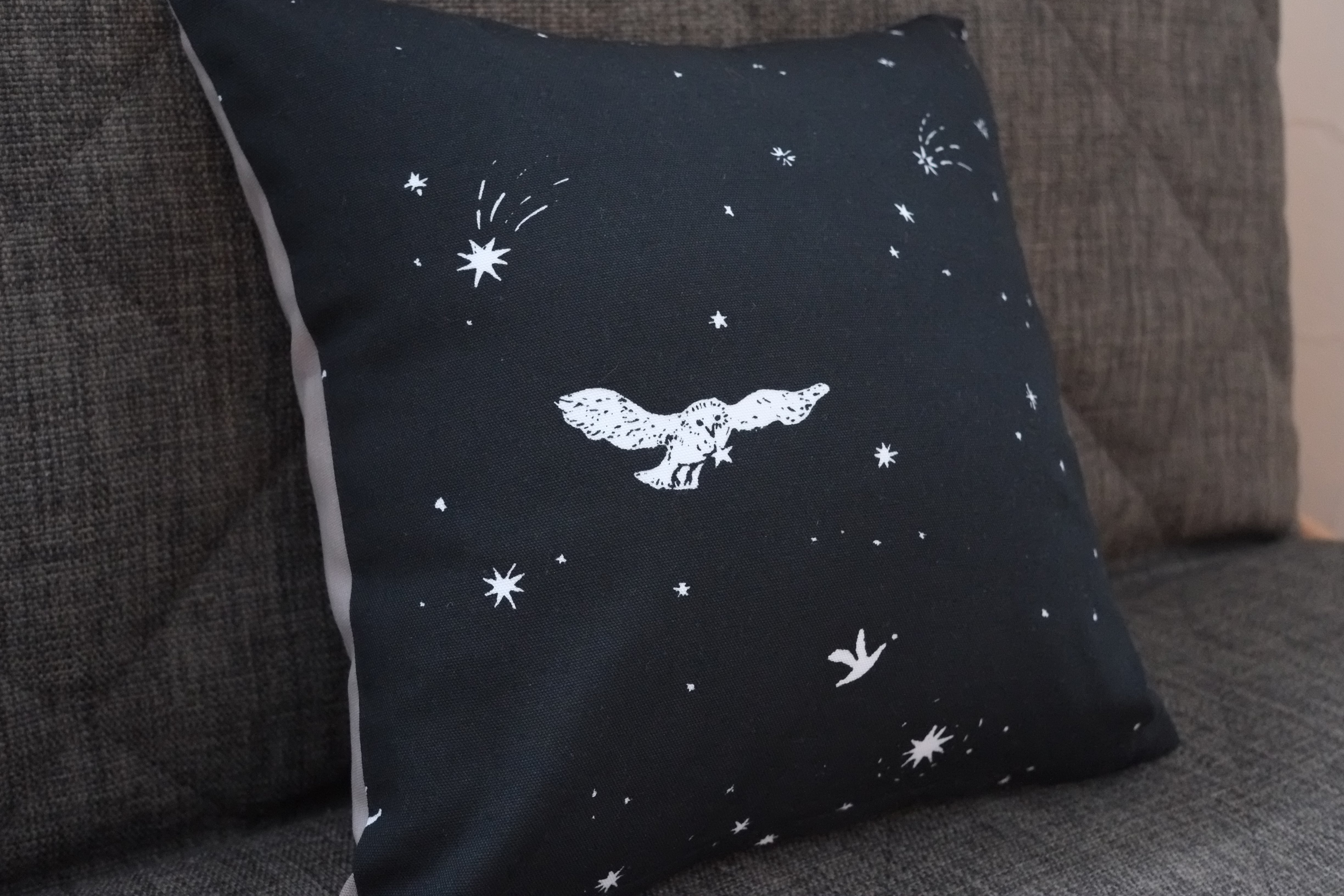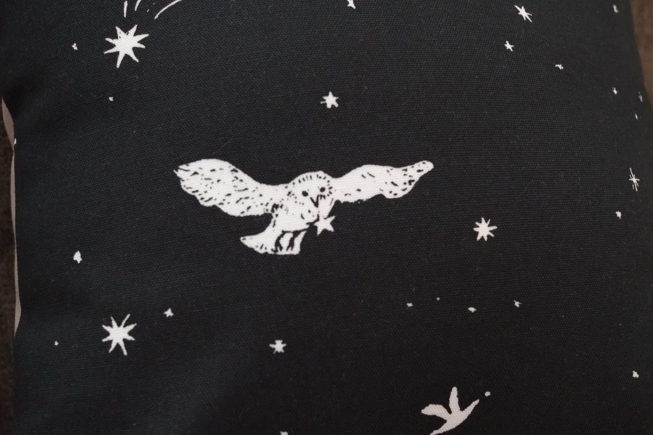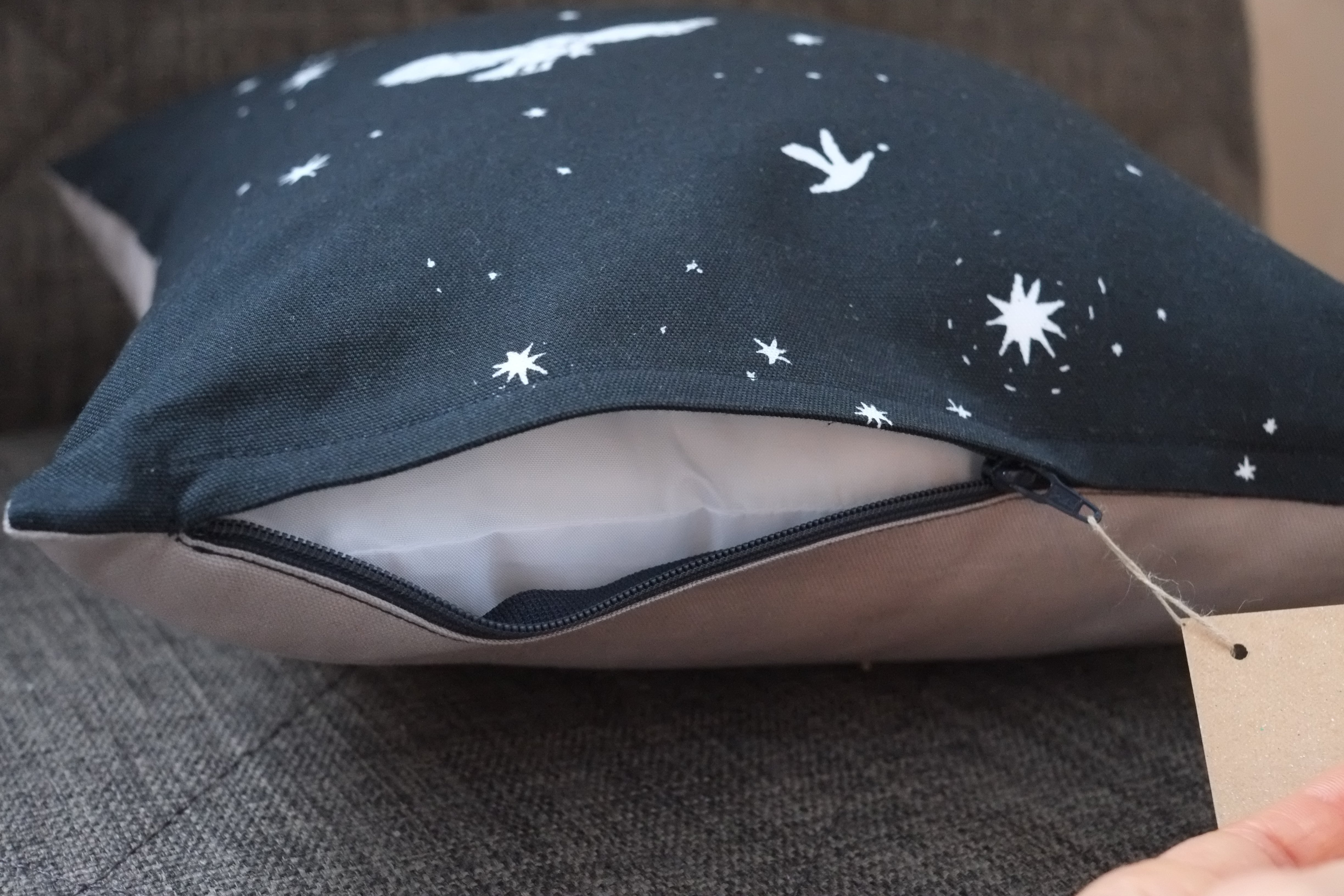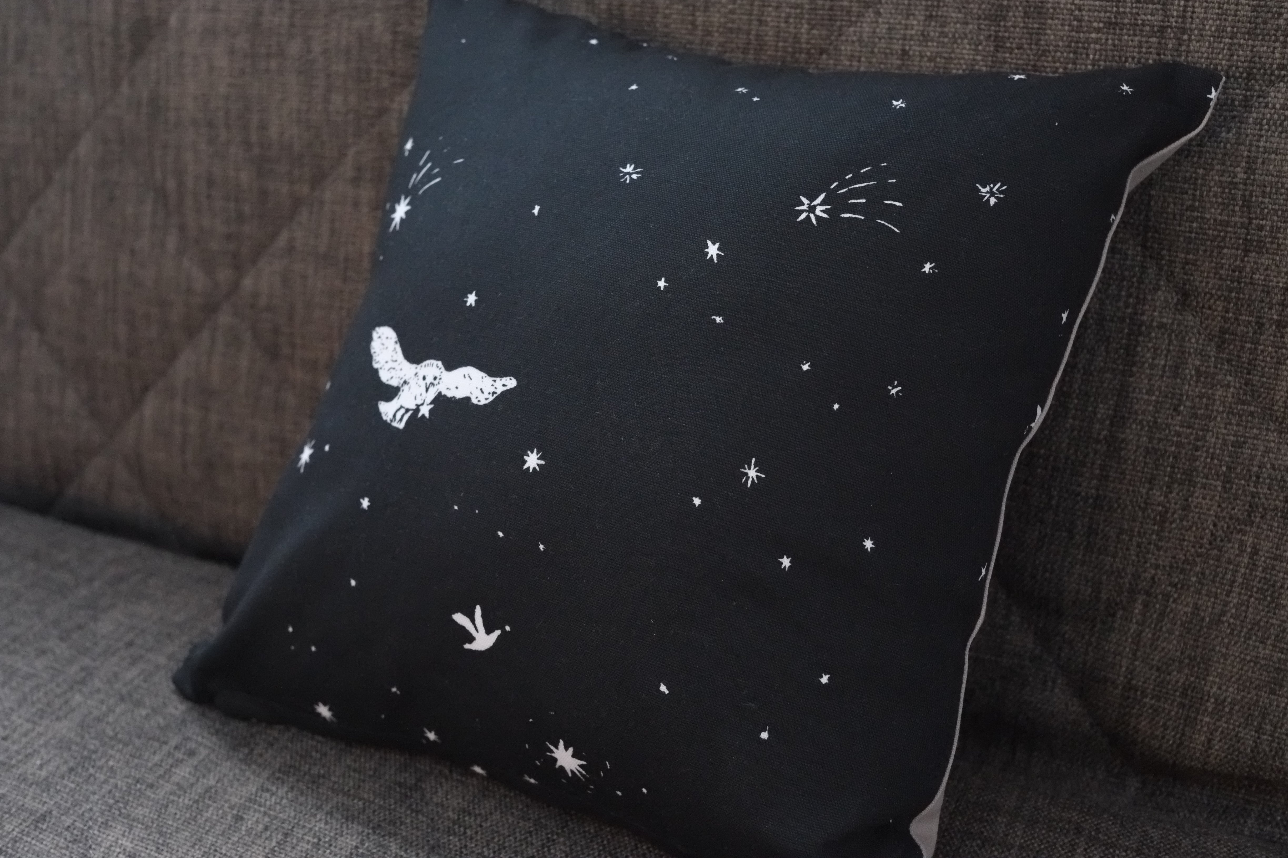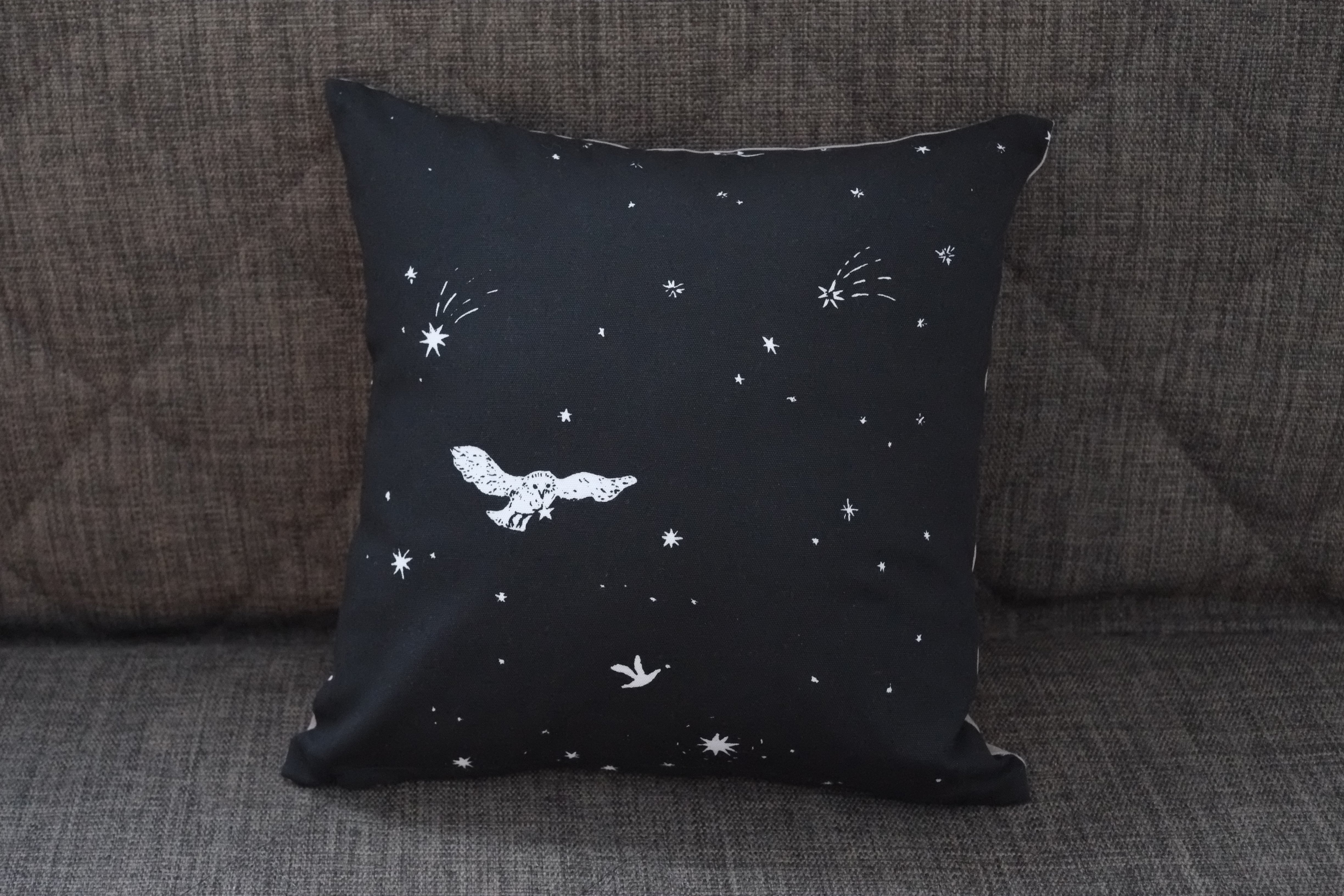 『星を釣る』の柄で30センチ角クッション用のカバーを仕立てました。