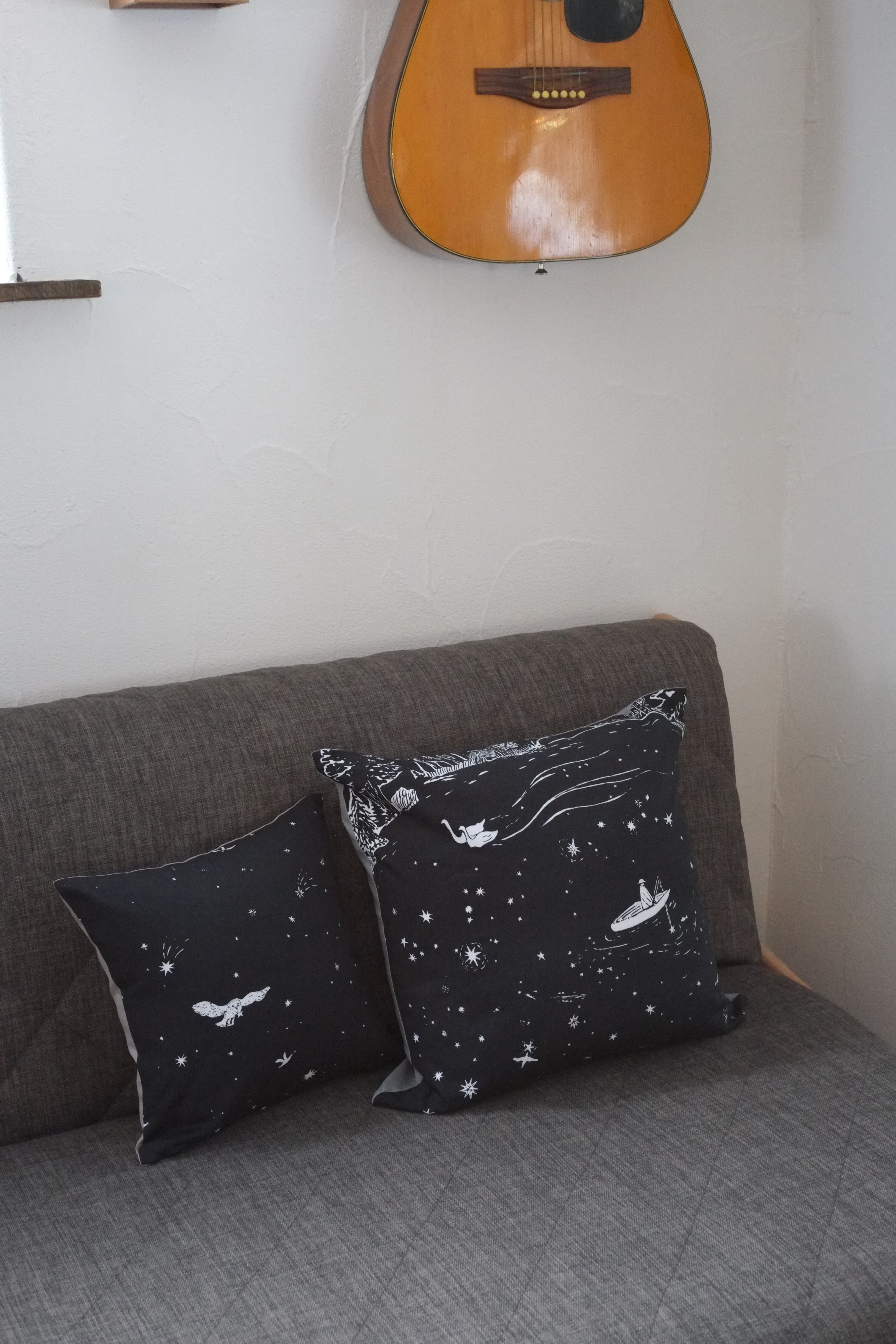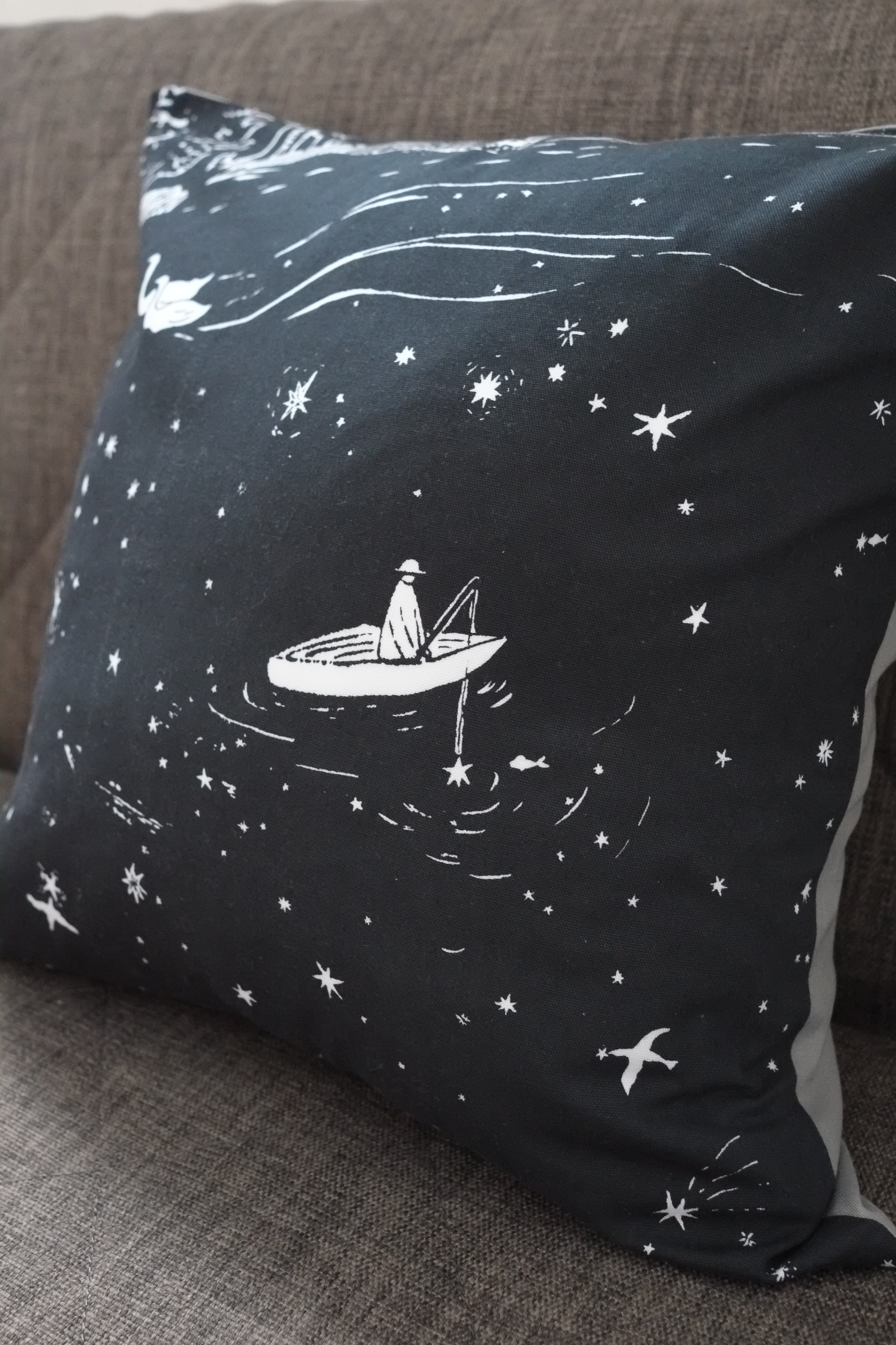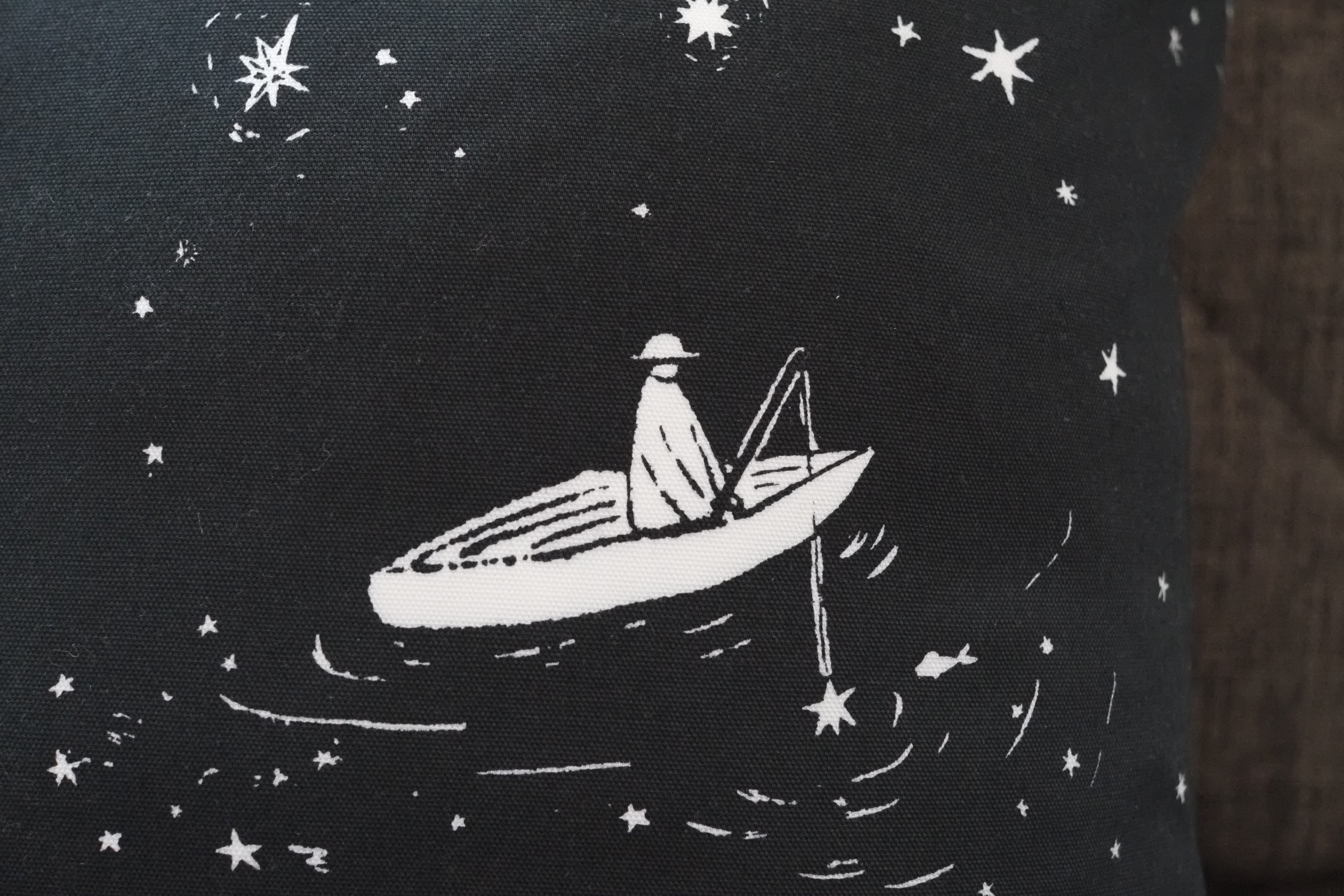 『星を釣る』の柄で45センチ角クッション用のカバーを仕立てました。