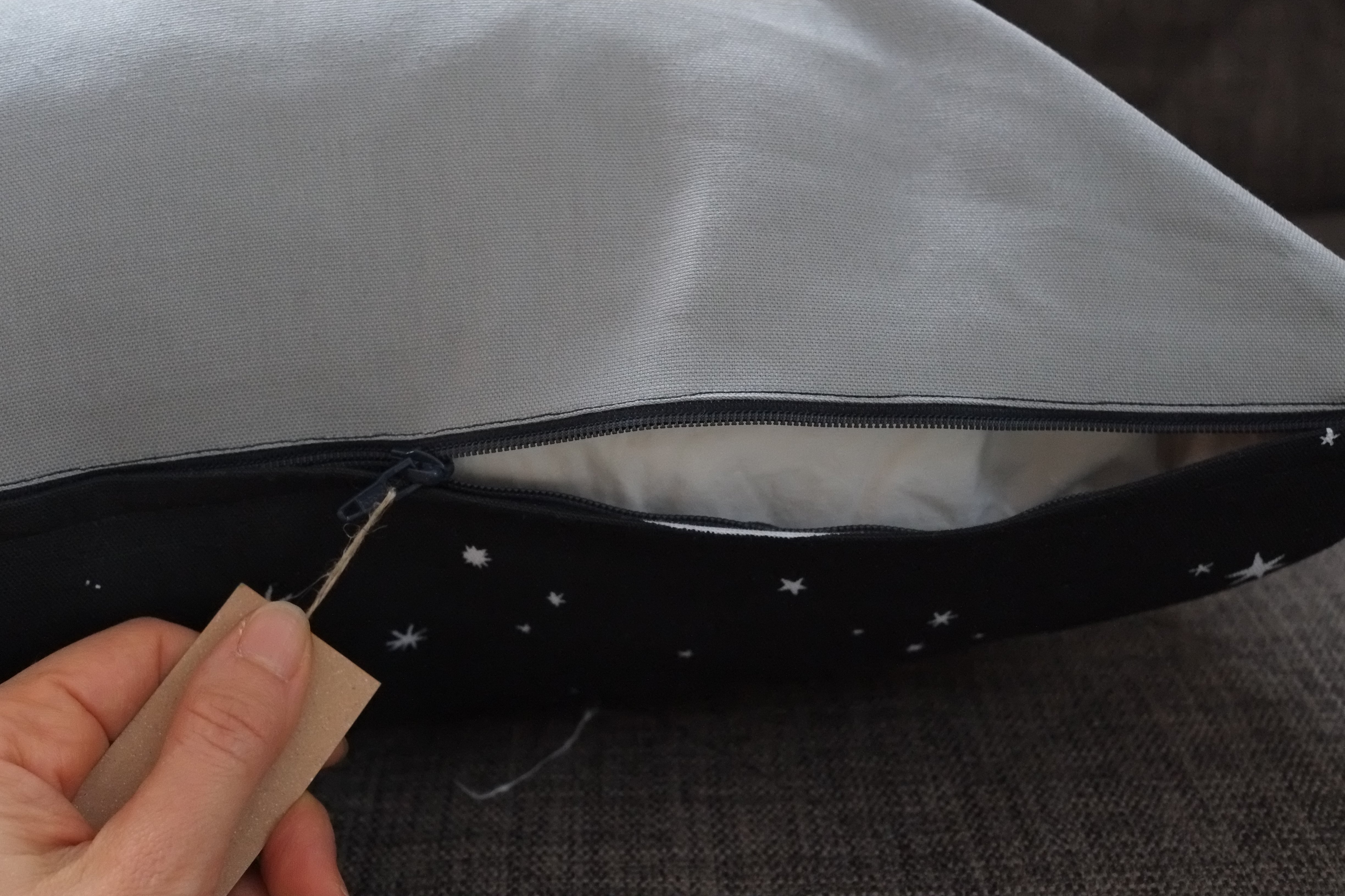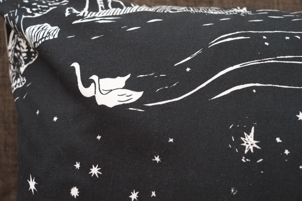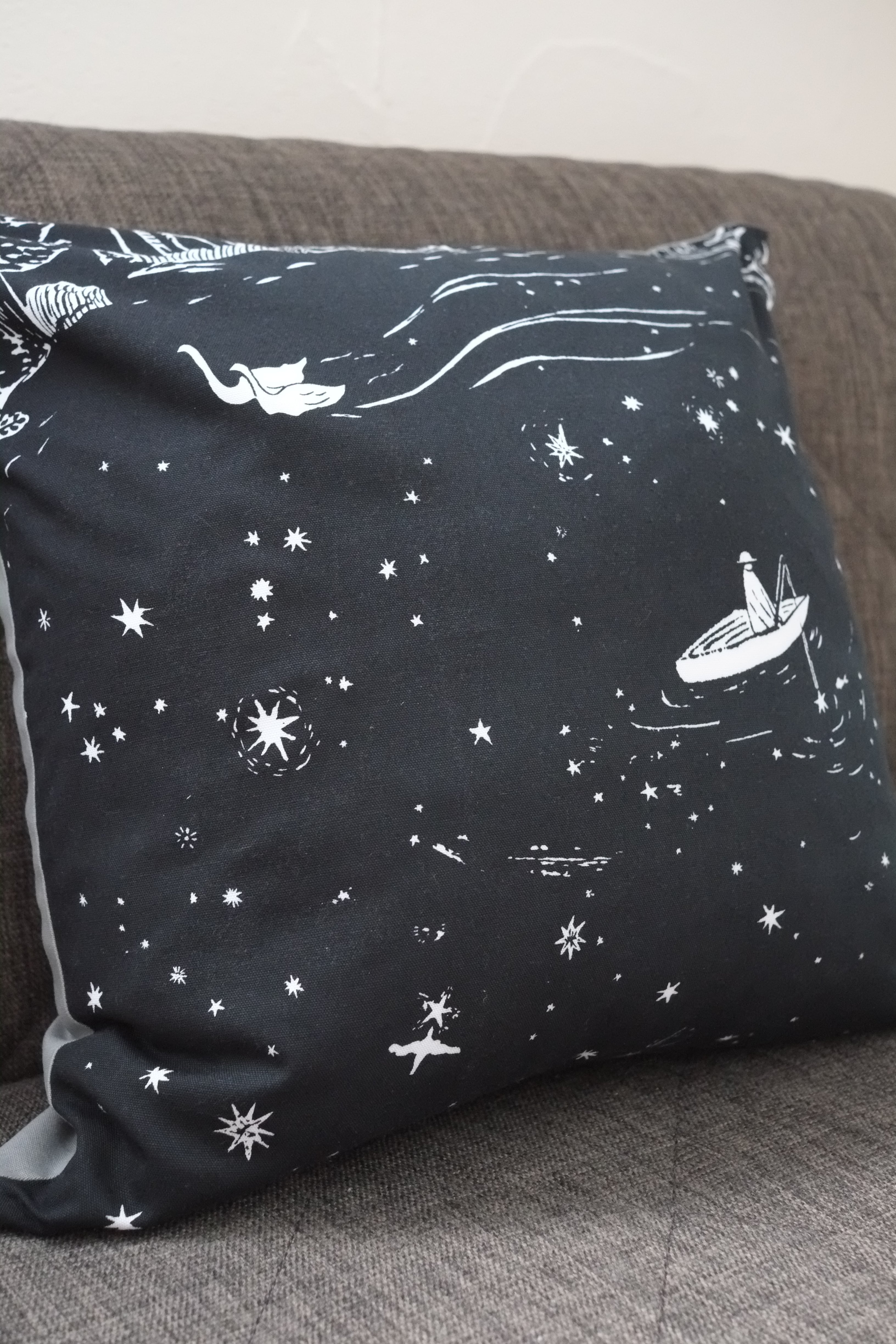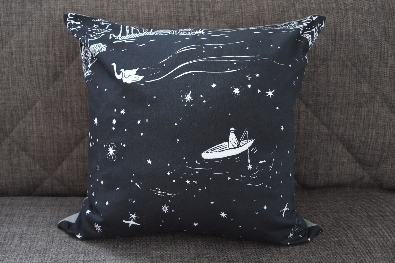 『星を釣る』の柄で45センチ角クッション用のカバーを仕立てました。