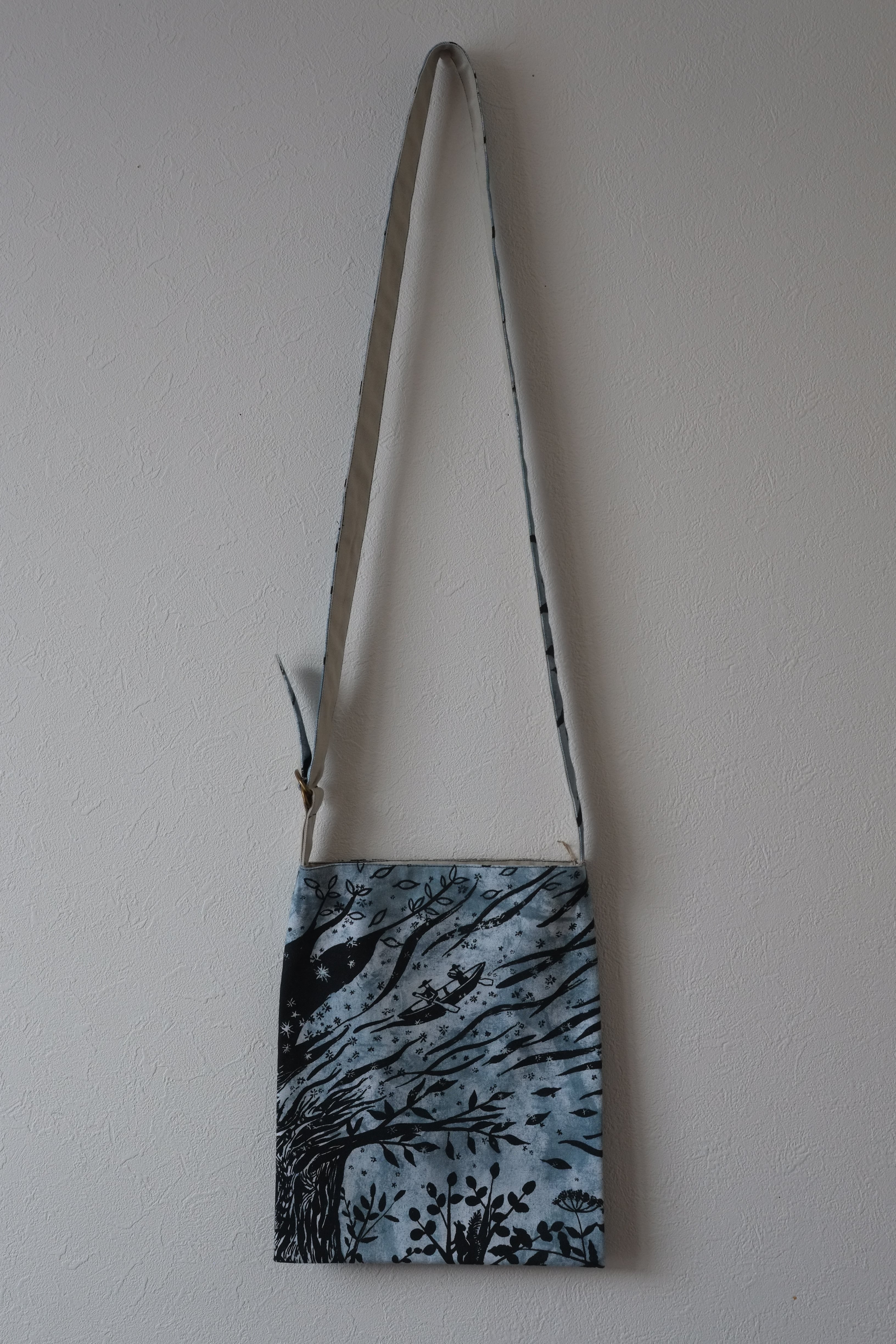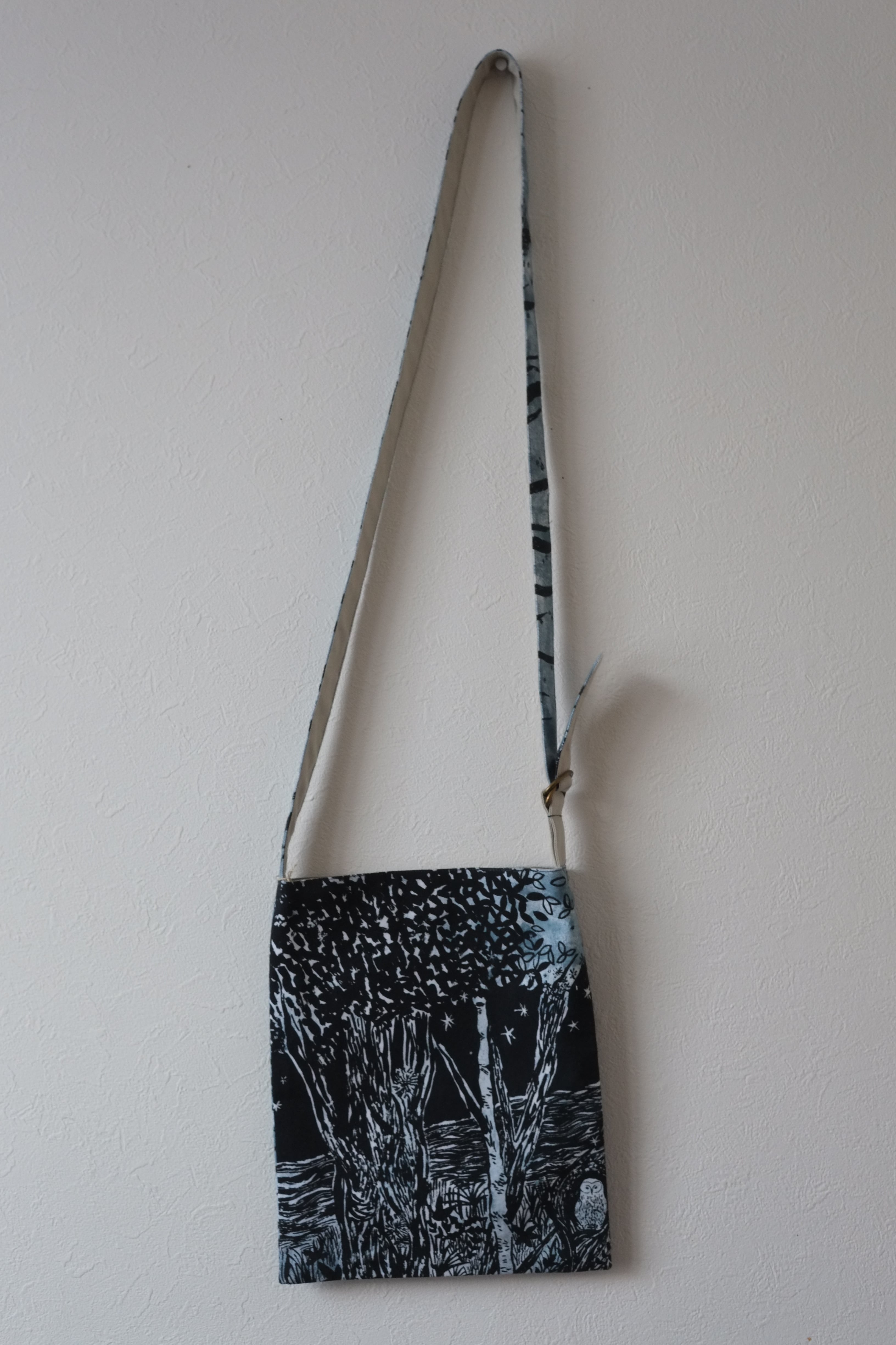 ななめバッグ『川とフクロウ』青
