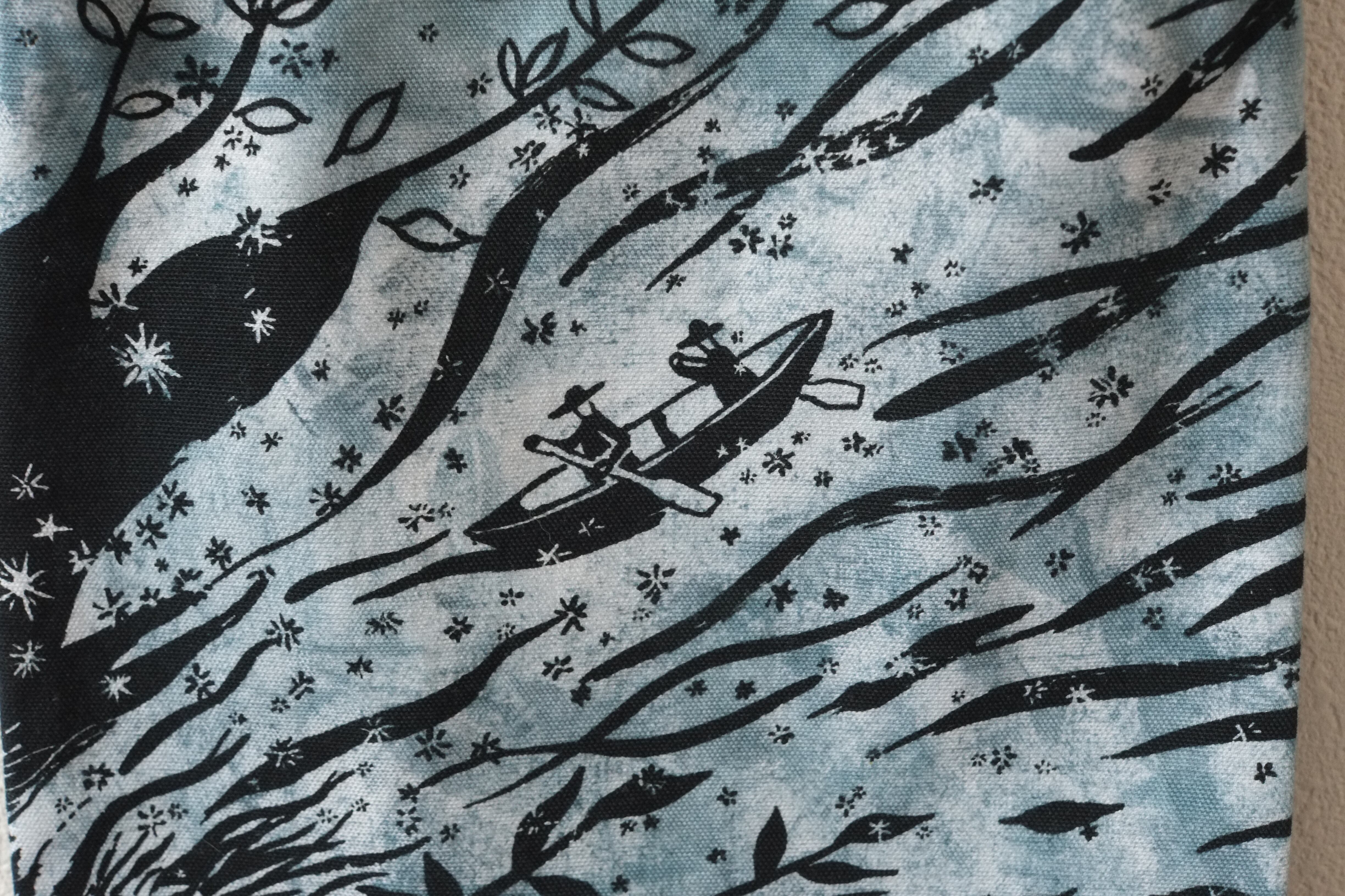 『川とフクロウ』を染めた布をななめバックに仕立てました。