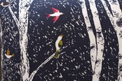 こちらの作品は全体の白樺と鳥の柄をプリントした後に、