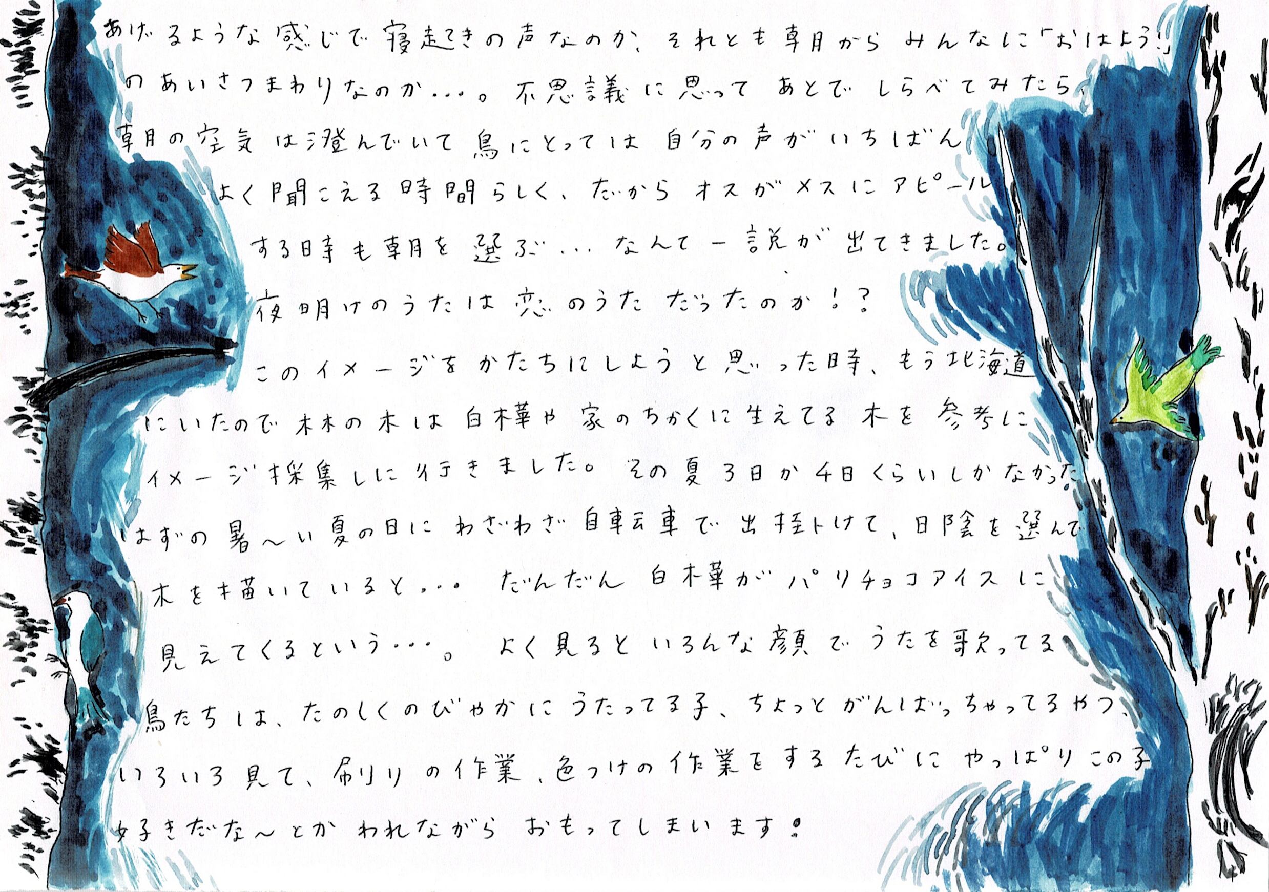 白樺の林で目を覚ましたばかりの小鳥たちが思い思いにさえずっています。