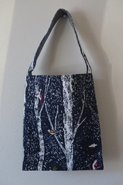 こちらの作品は全体の白樺と鳥の柄をプリントした後に、
