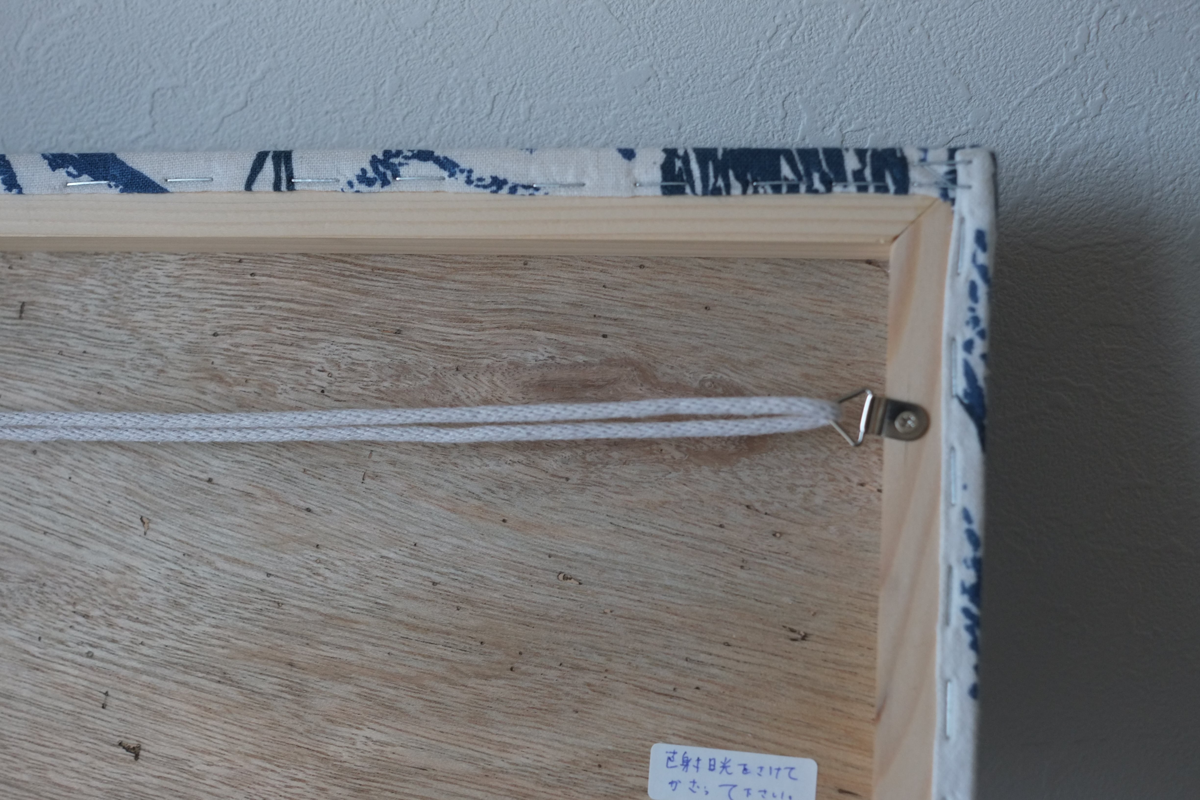 後ろには金具と紐がついていて壁にそのままかけられるようになっています。