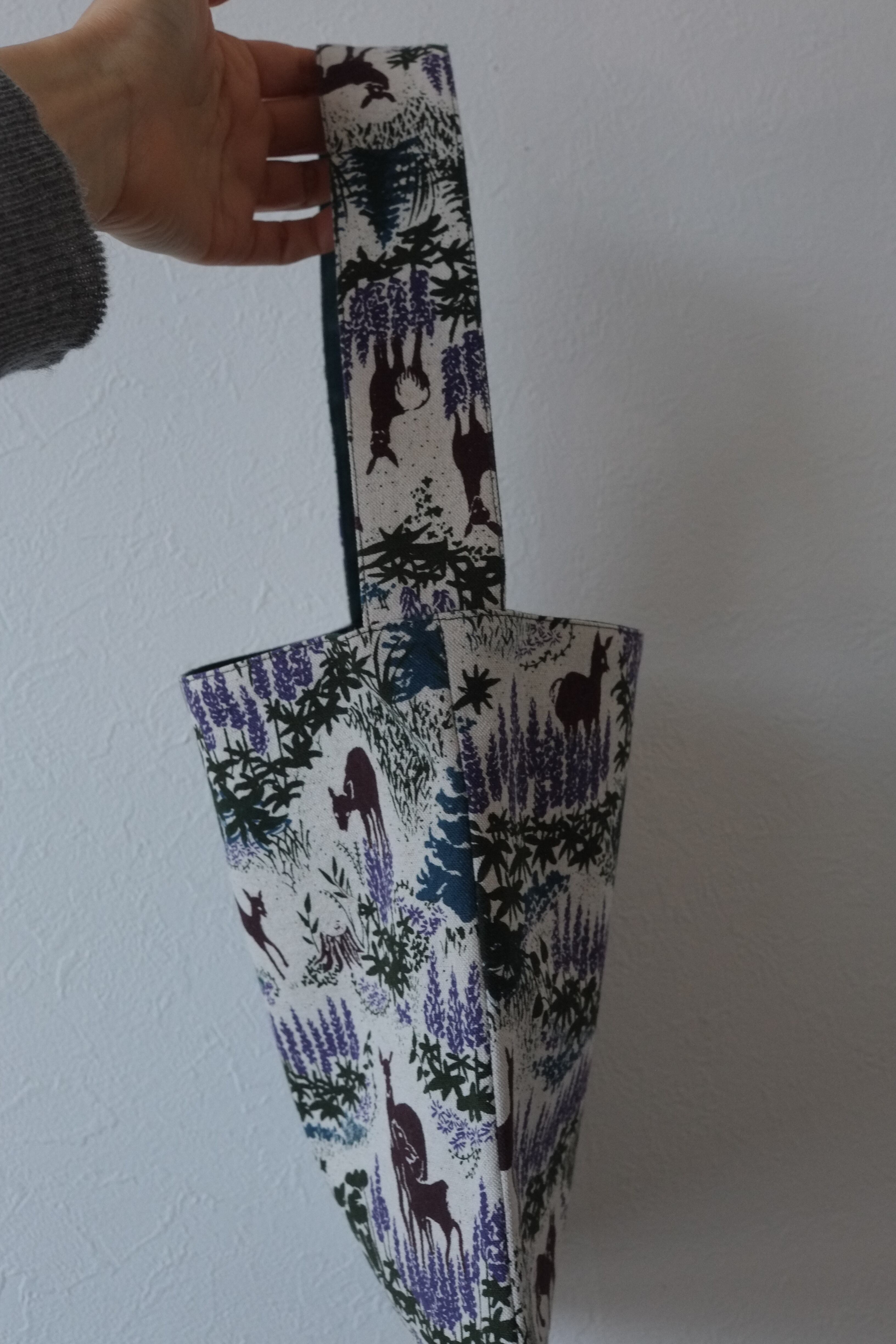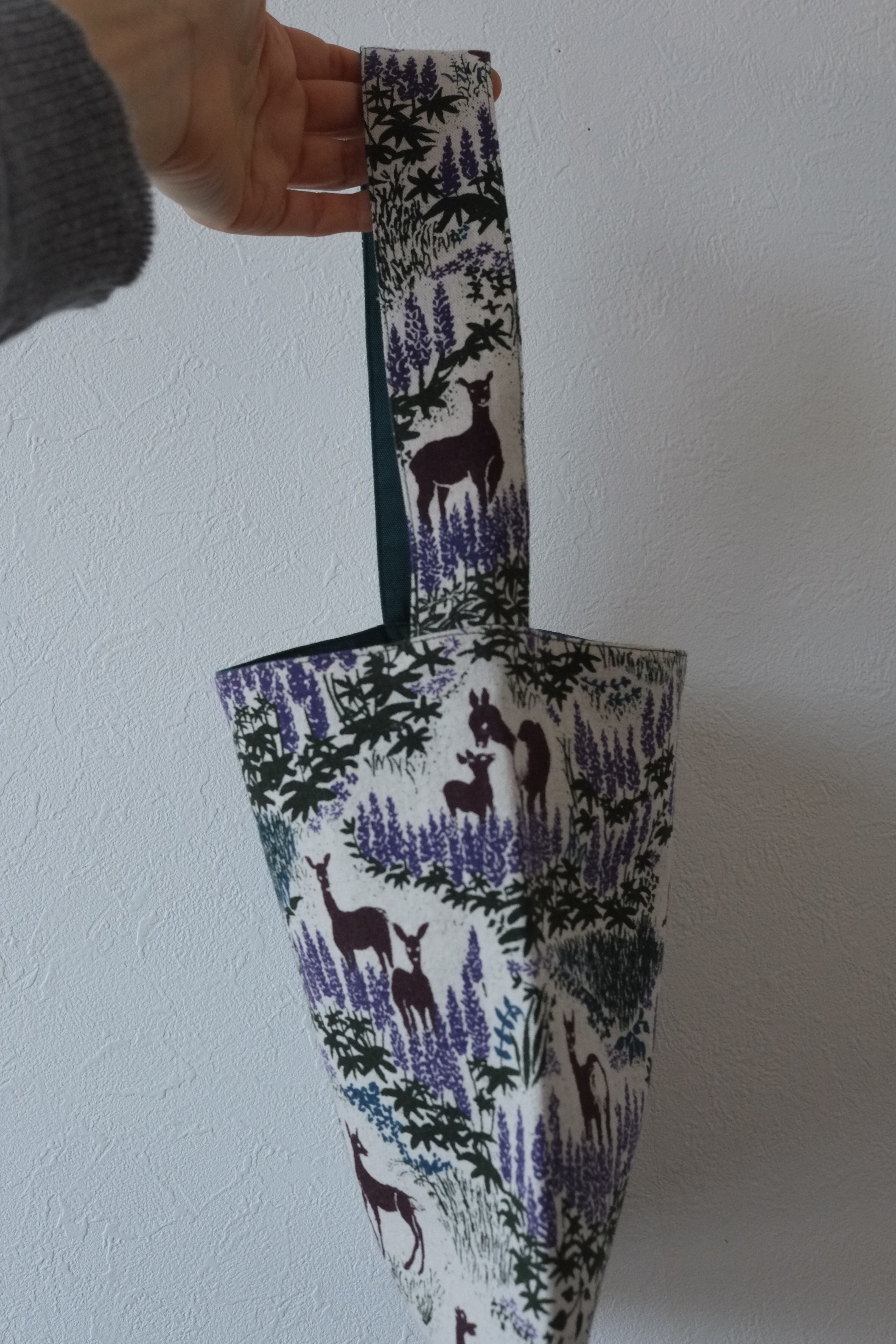 『ルピナスと鹿』を染めた布をミニバックに仕立てました。