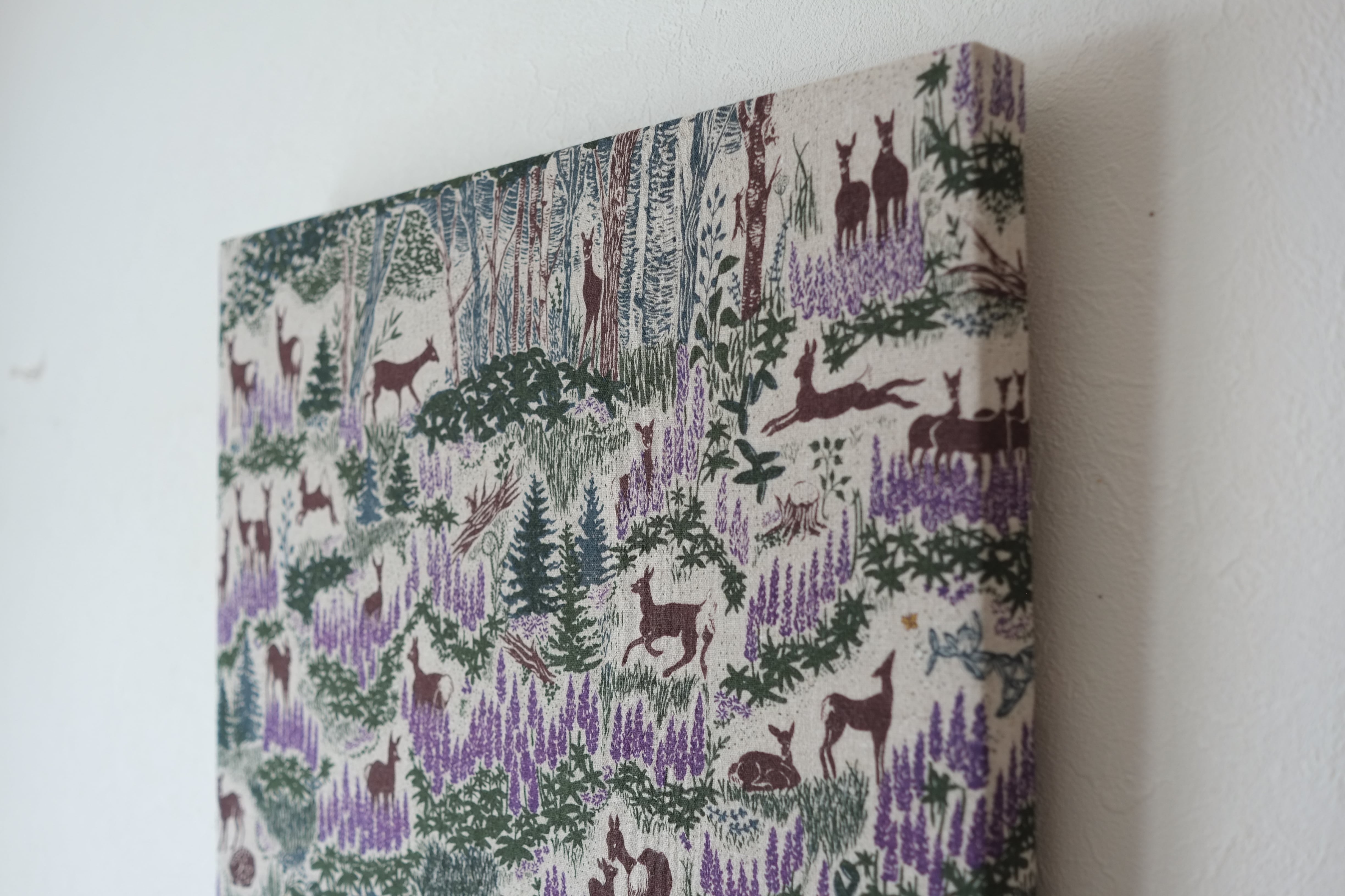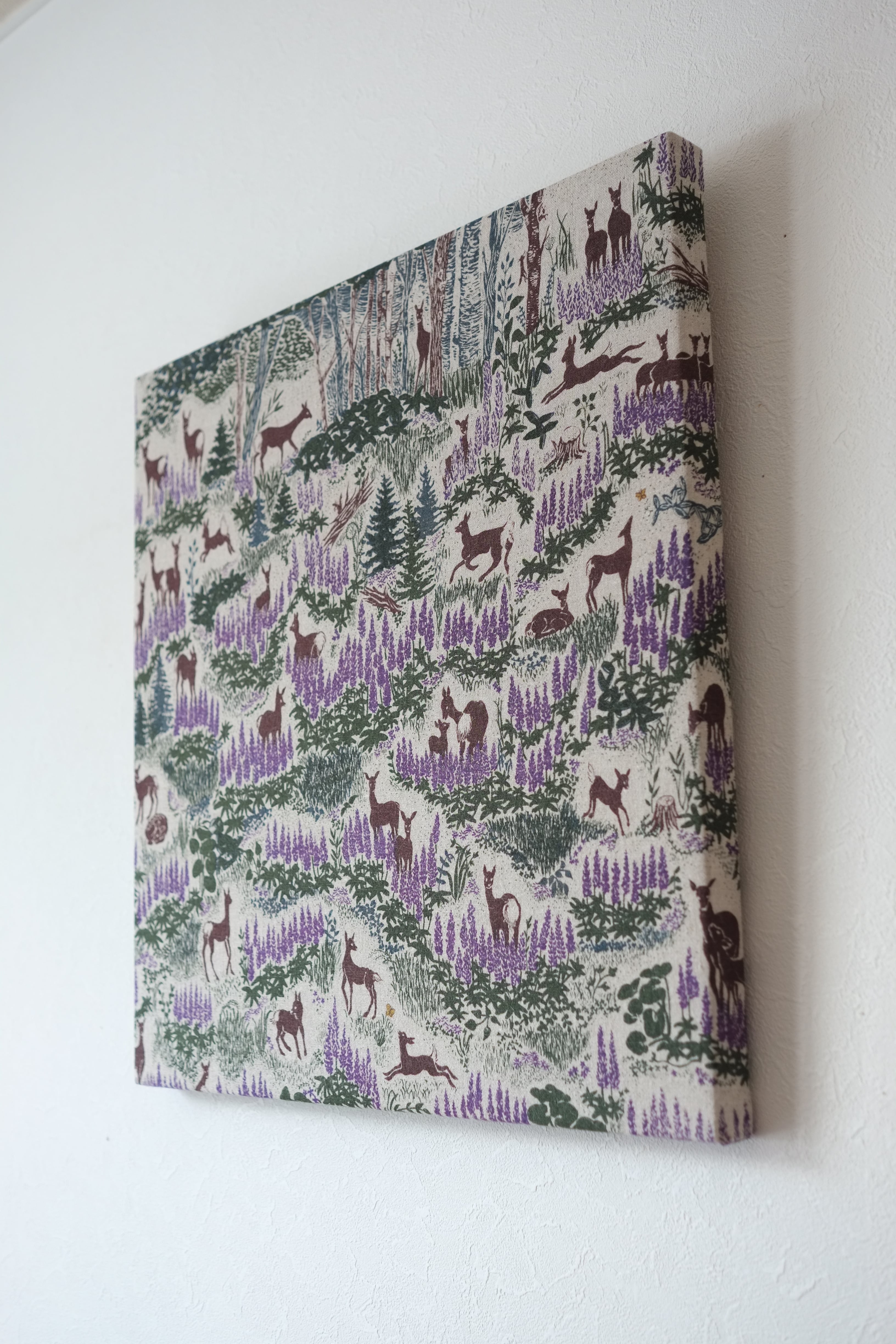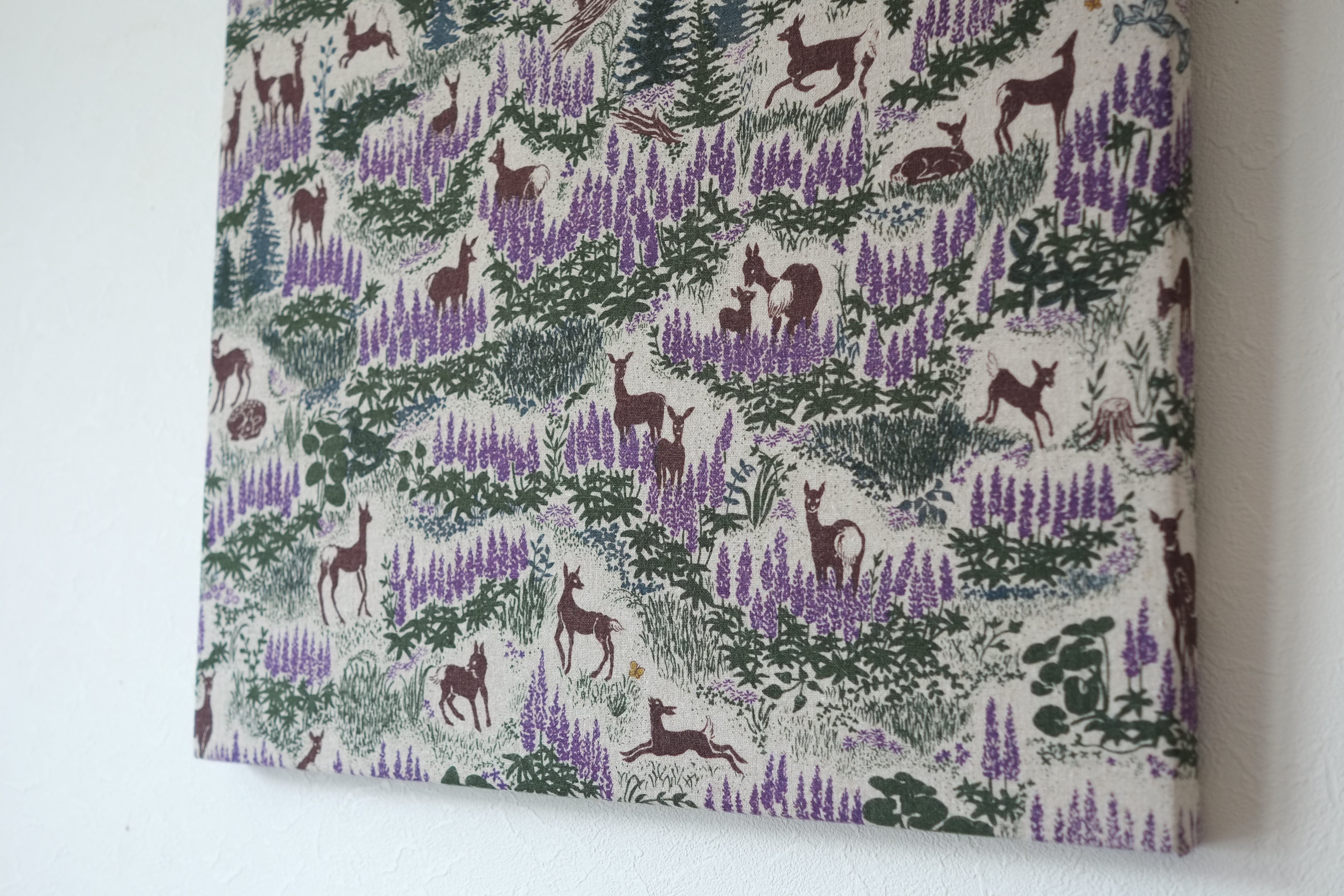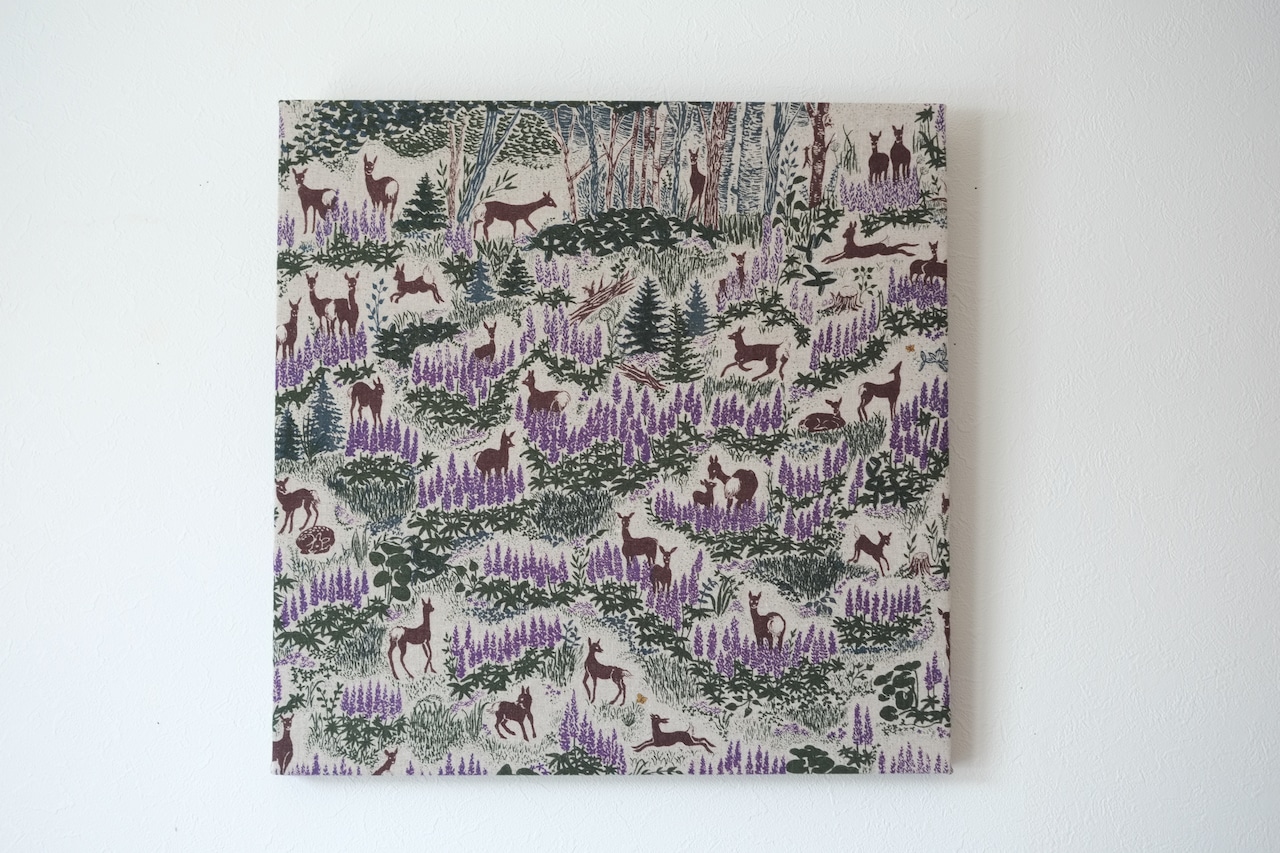 シルクスクリーンの手捺染で染めた生地をファブリックパネルに仕立てました。