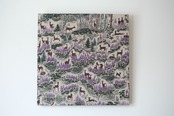 こちらの作品は緑、グレー、茶、紫の型をプリントした後に、