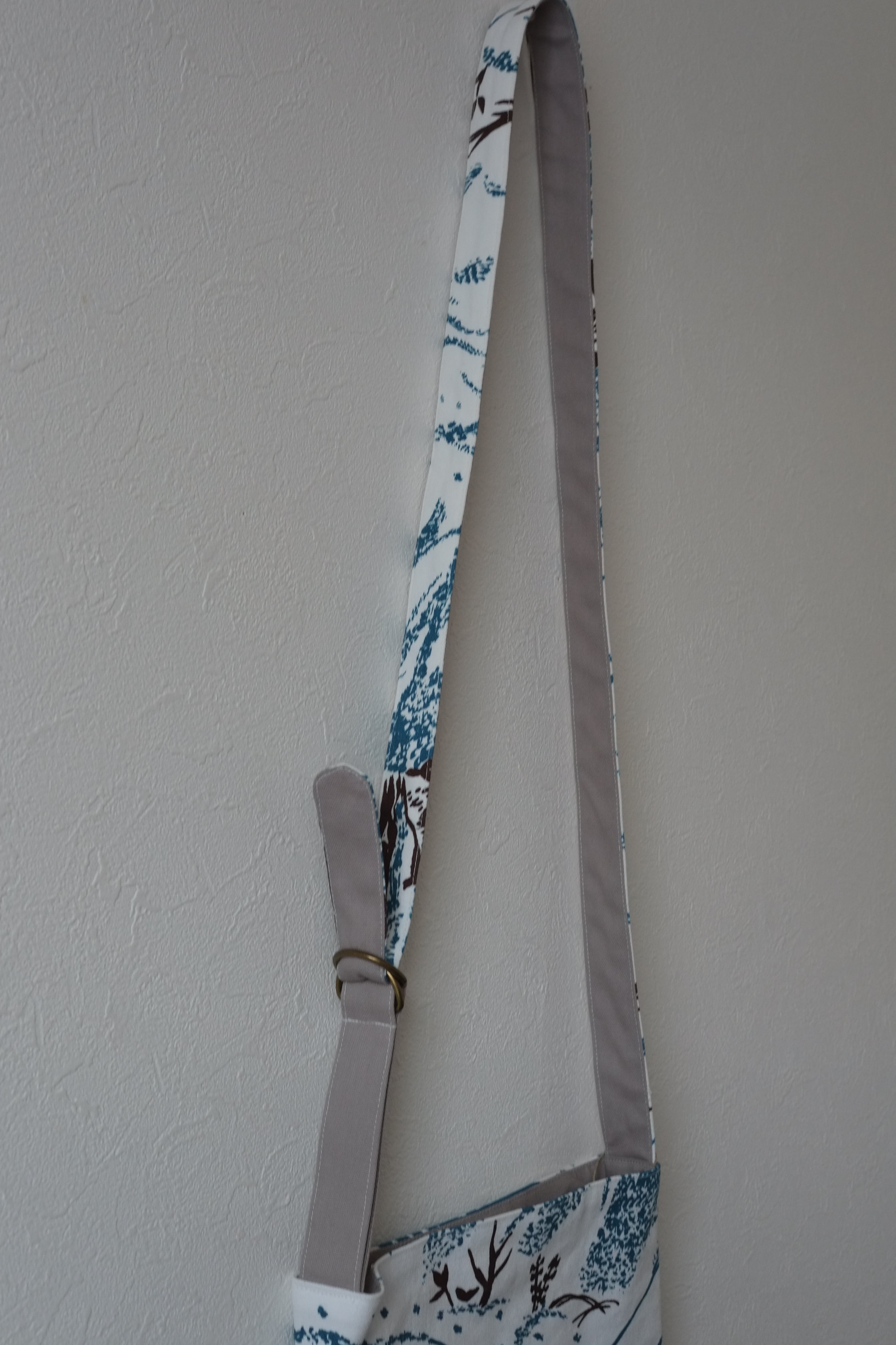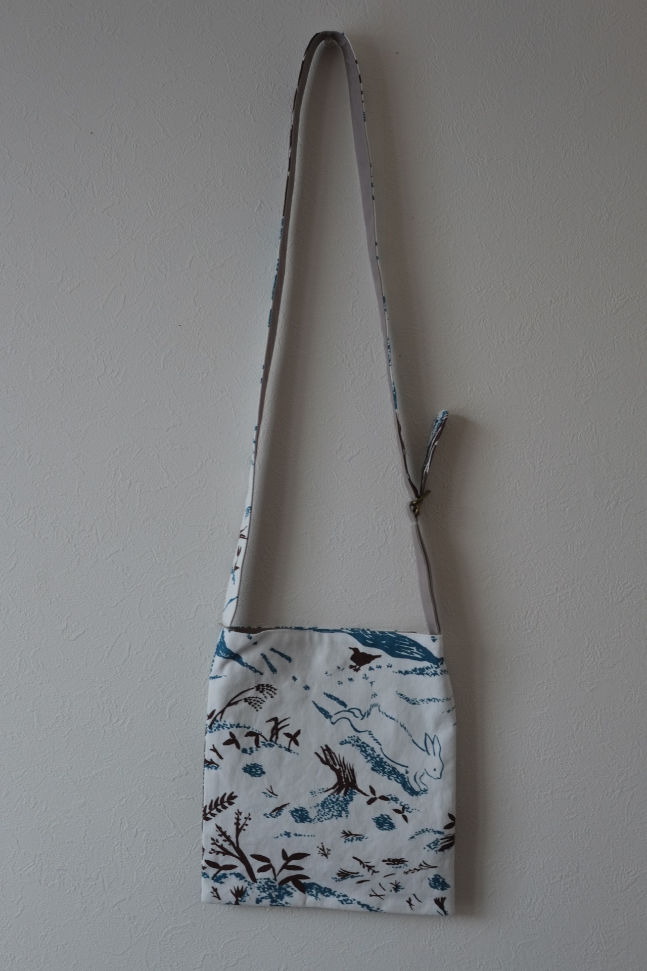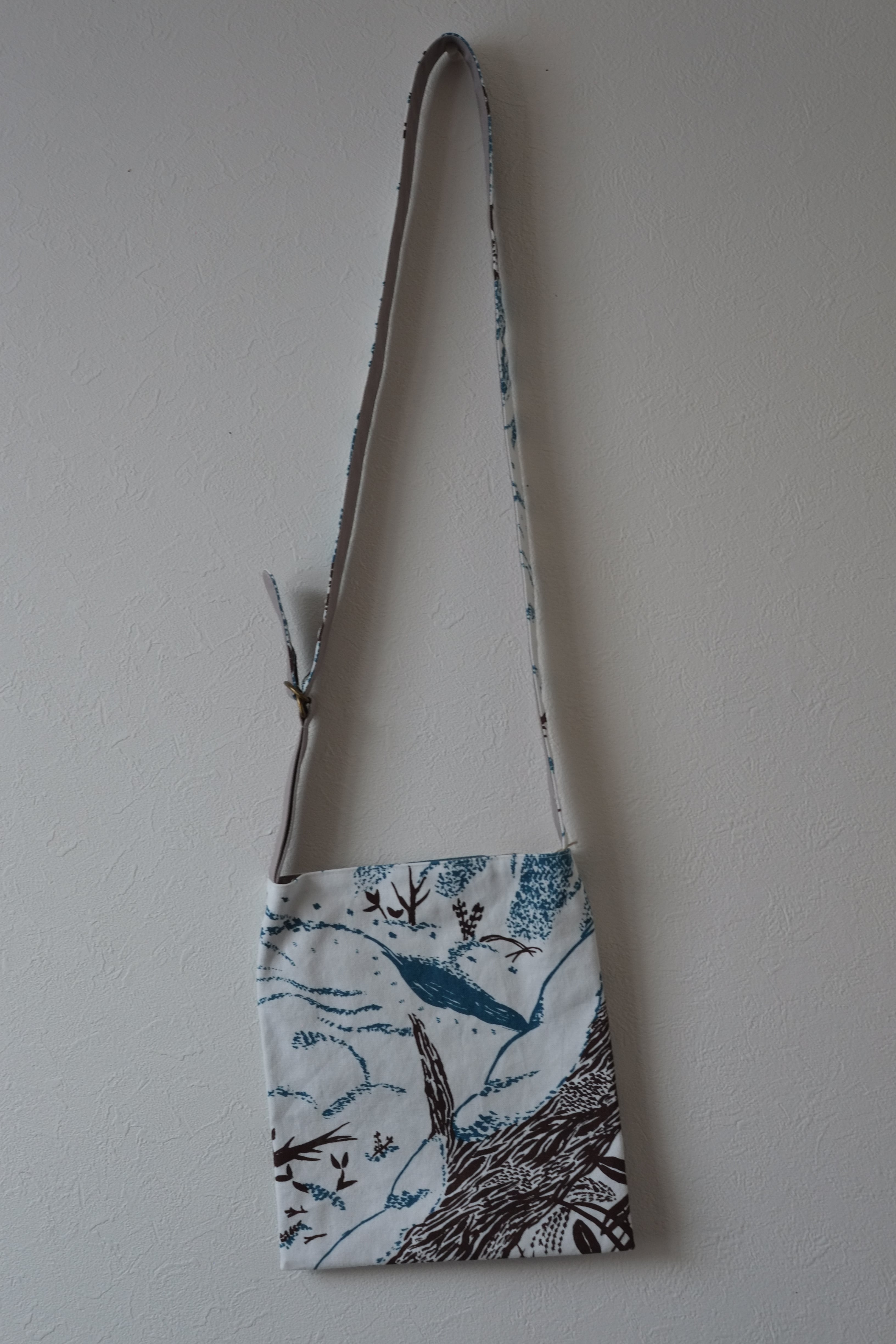 『冬の交差点』を染めた布をななめバックに仕立てました。