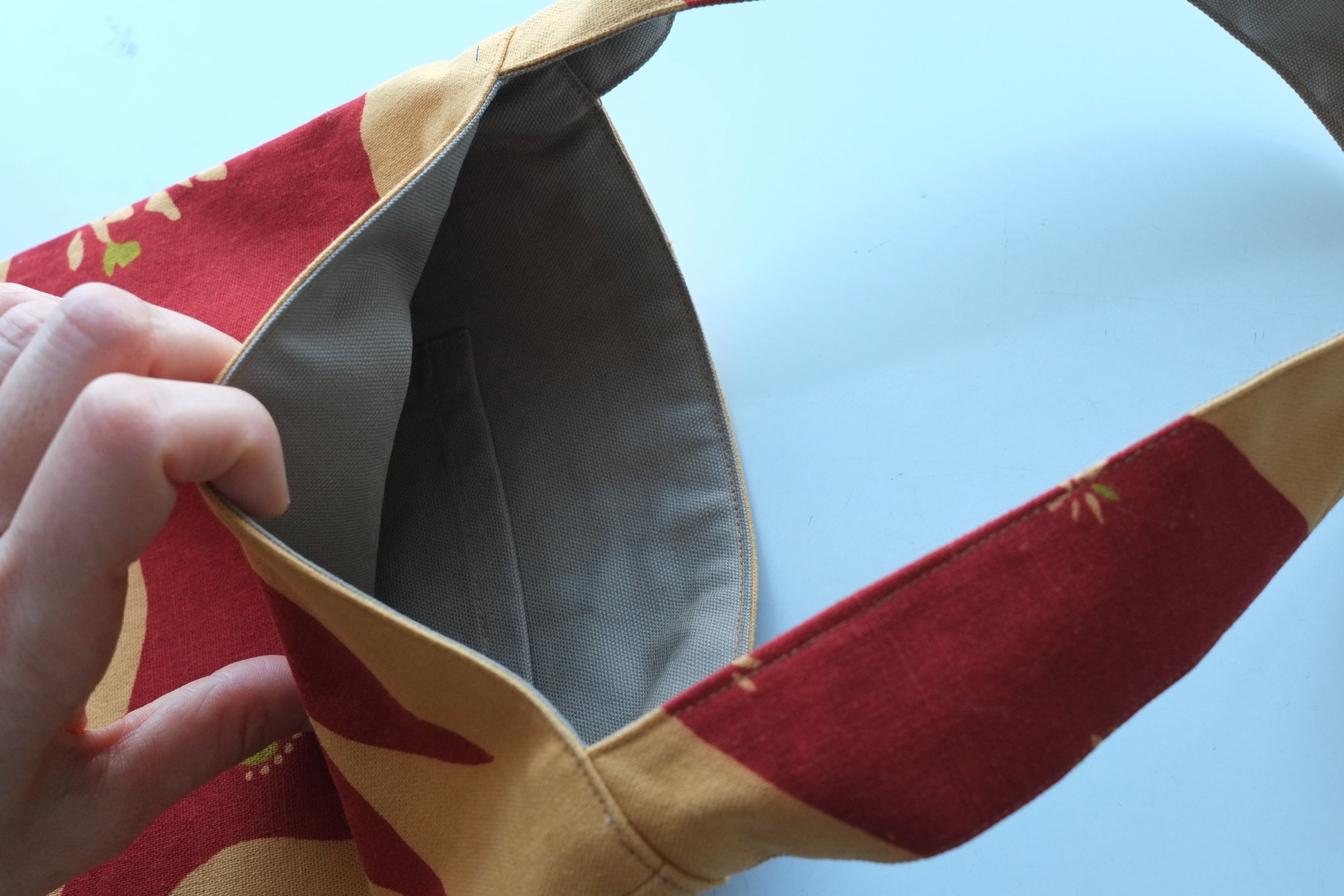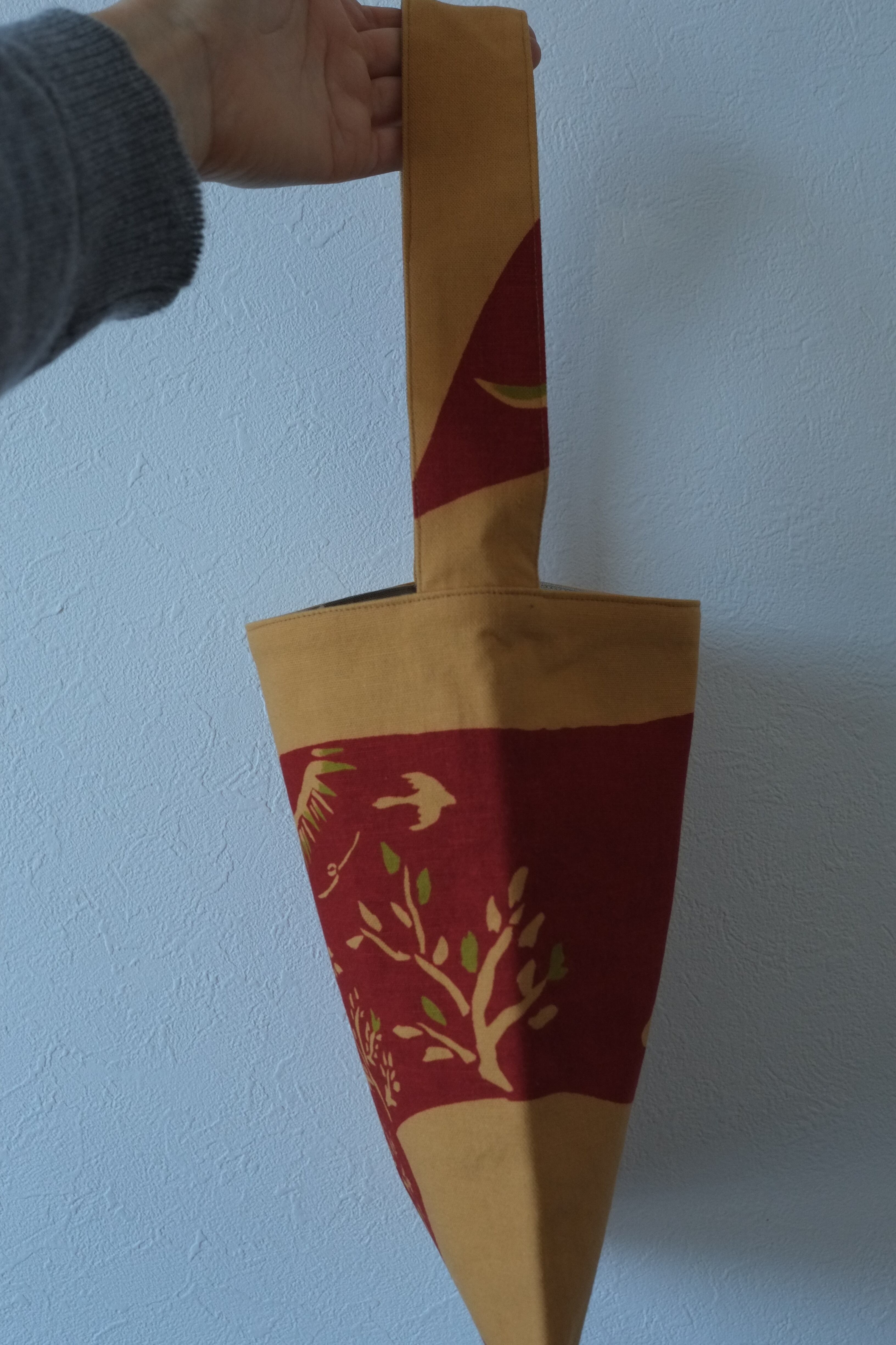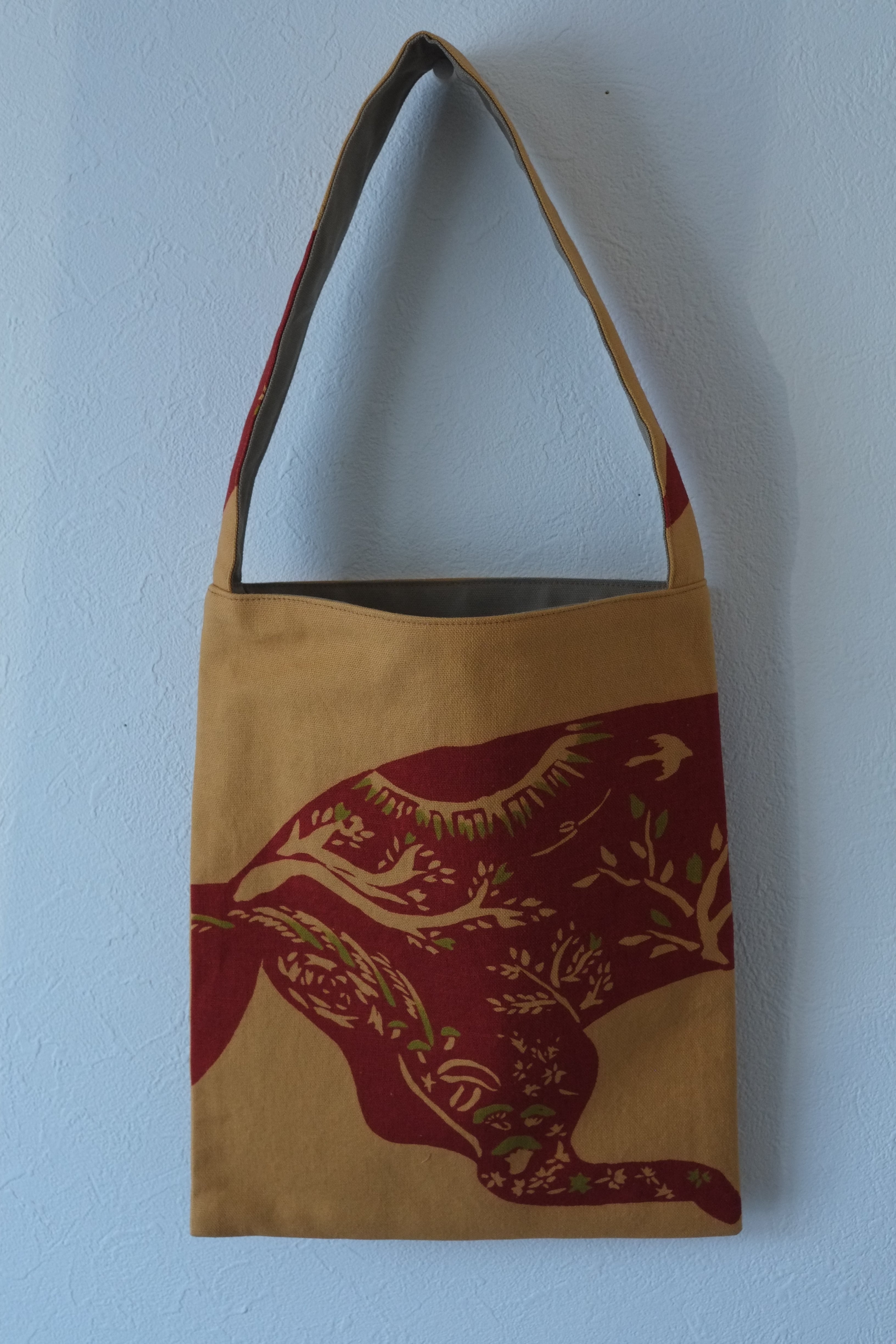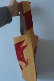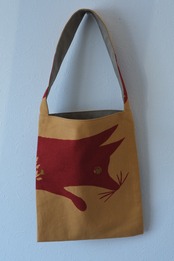 あかぎつねを染めた布をミニバックに仕立てました。