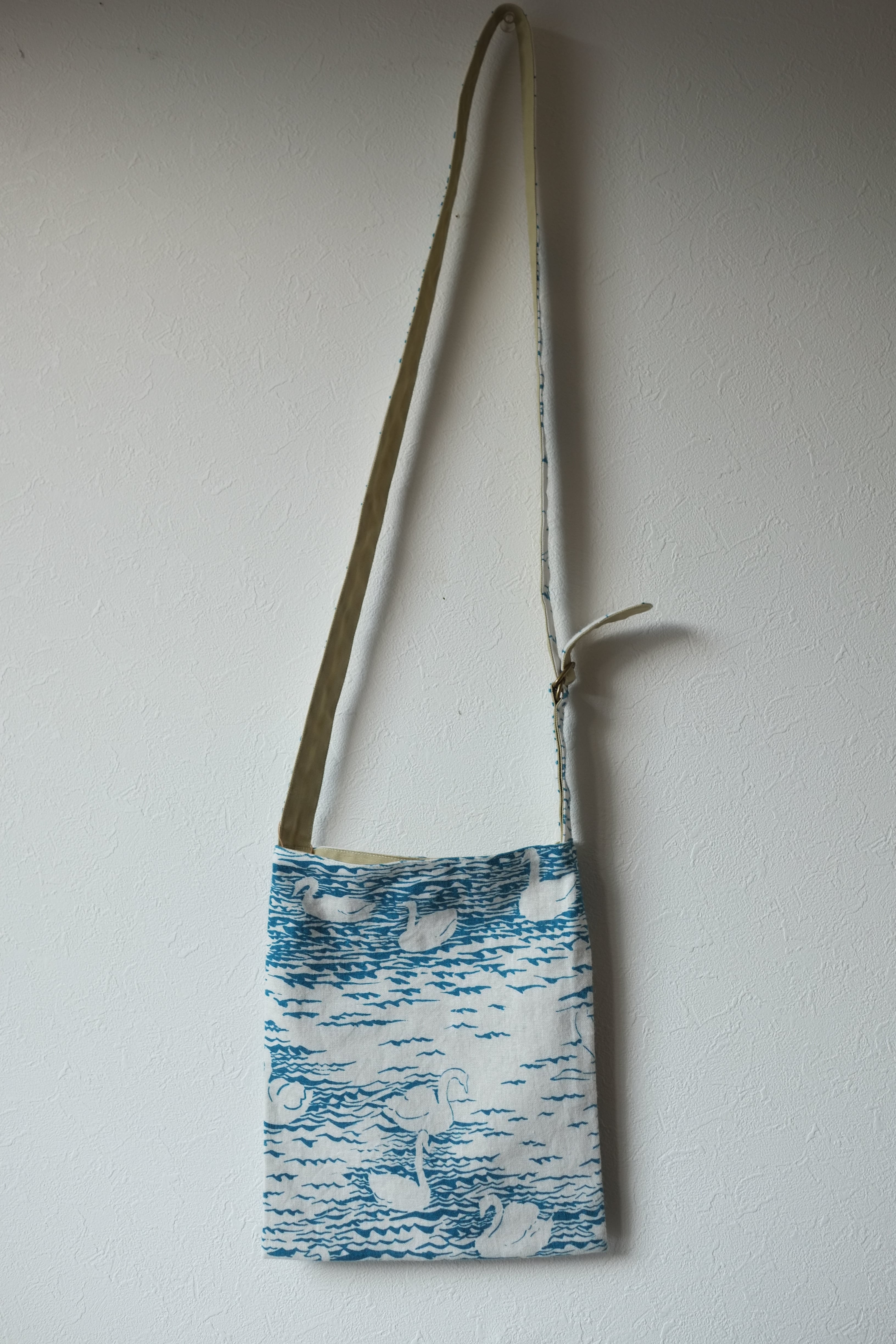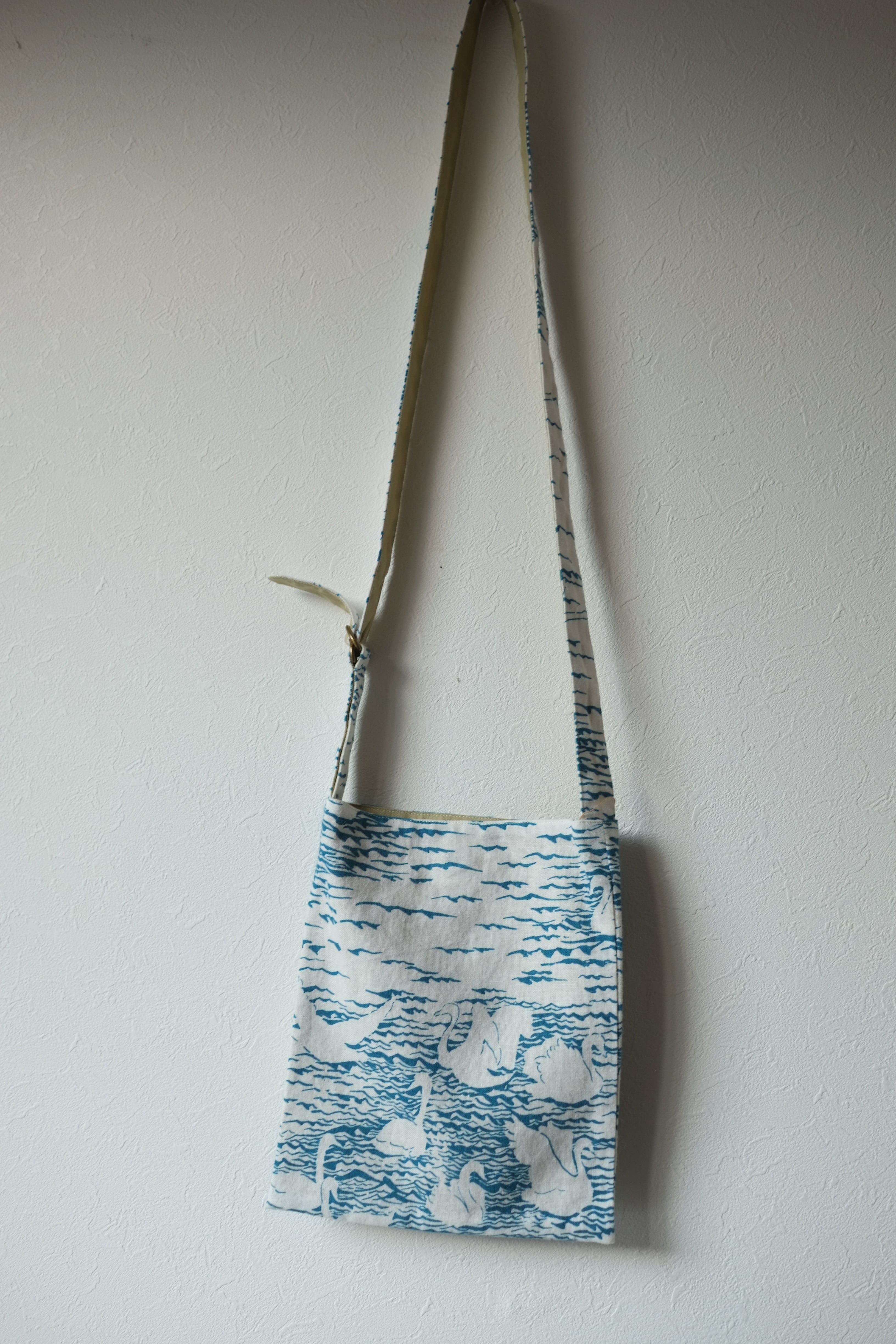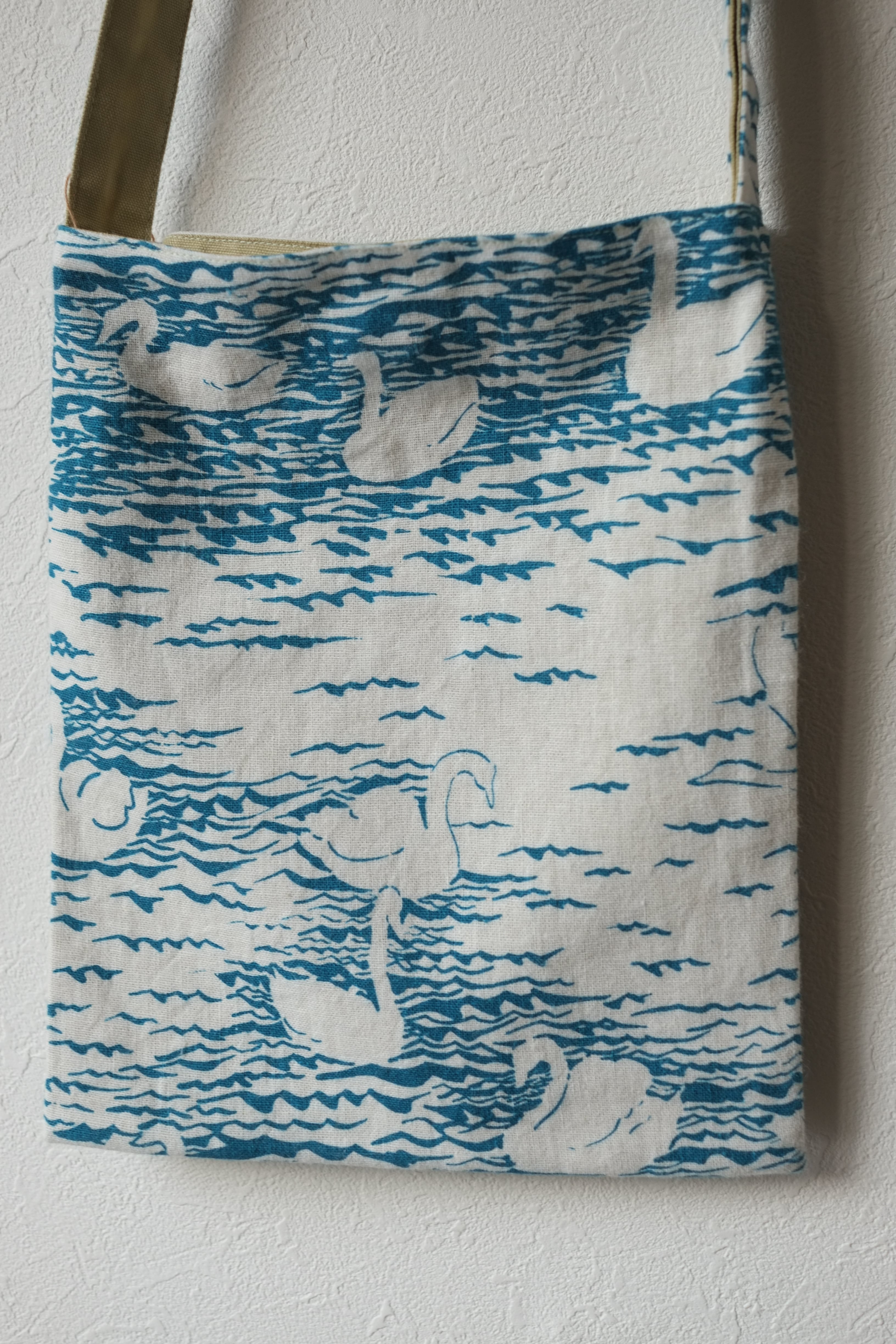 たくさんの白鳥が浮かぶ湖を染めた布をななめバックに仕立てました。