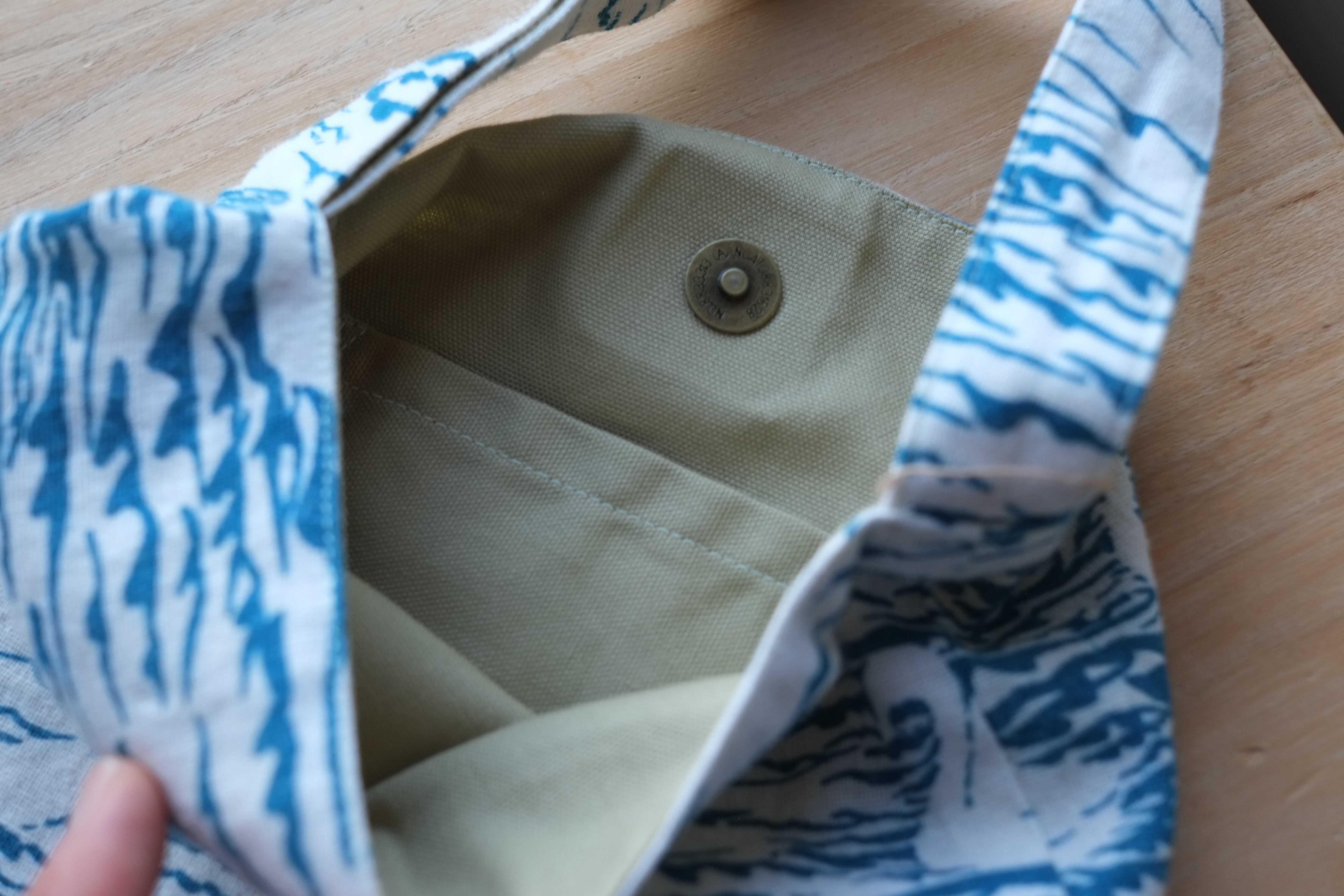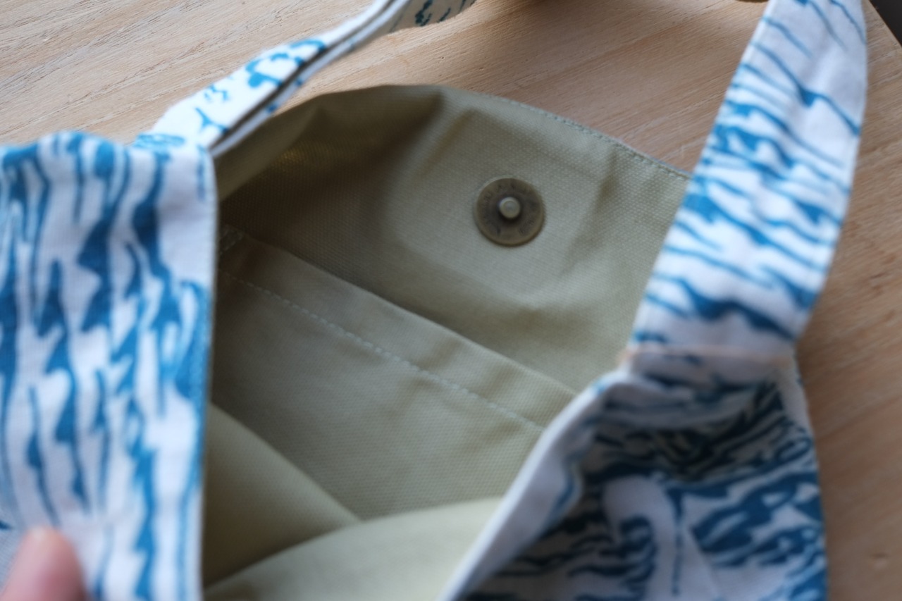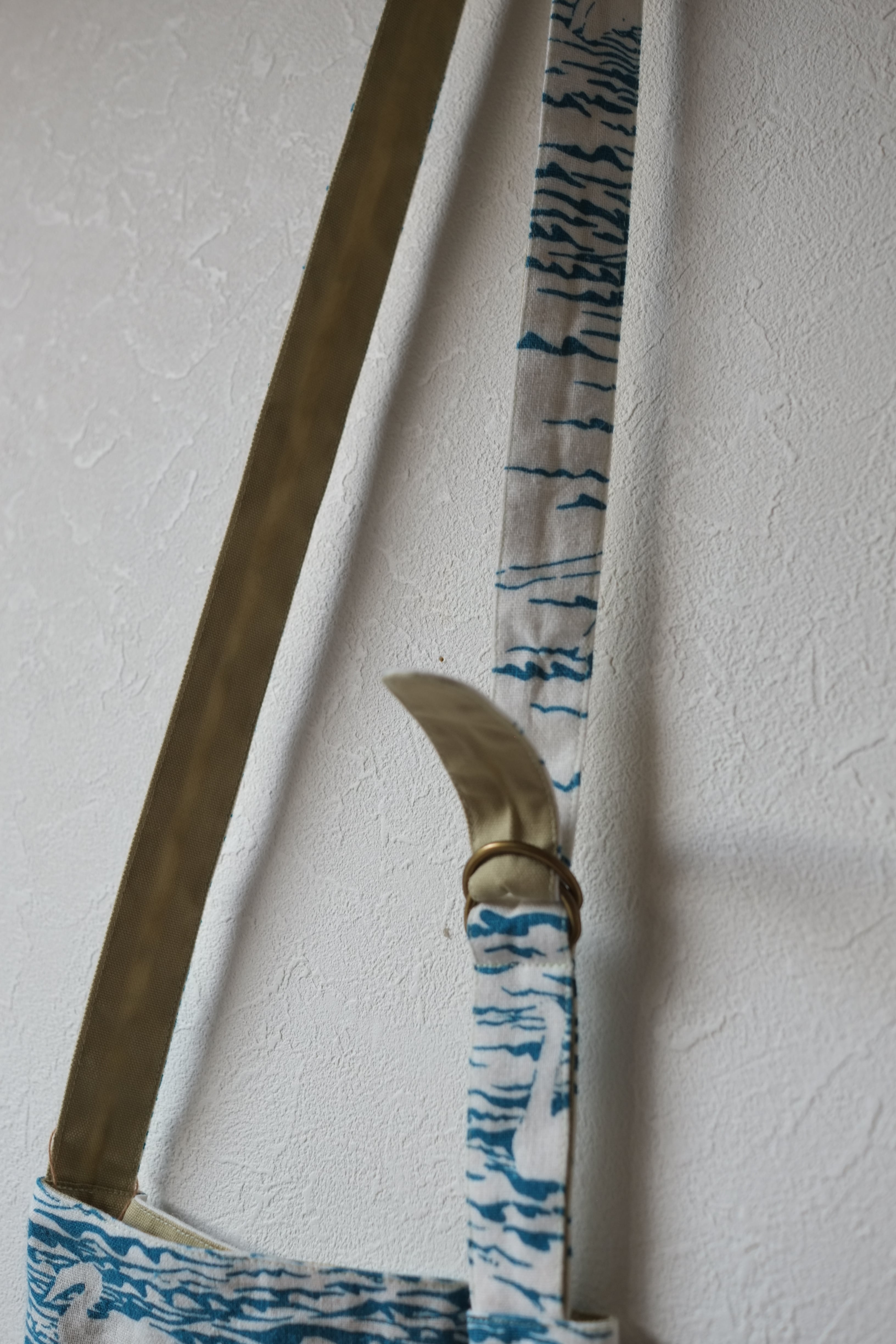 たくさんの白鳥が浮かぶ湖を染めた布をななめバックに仕立てました。