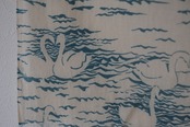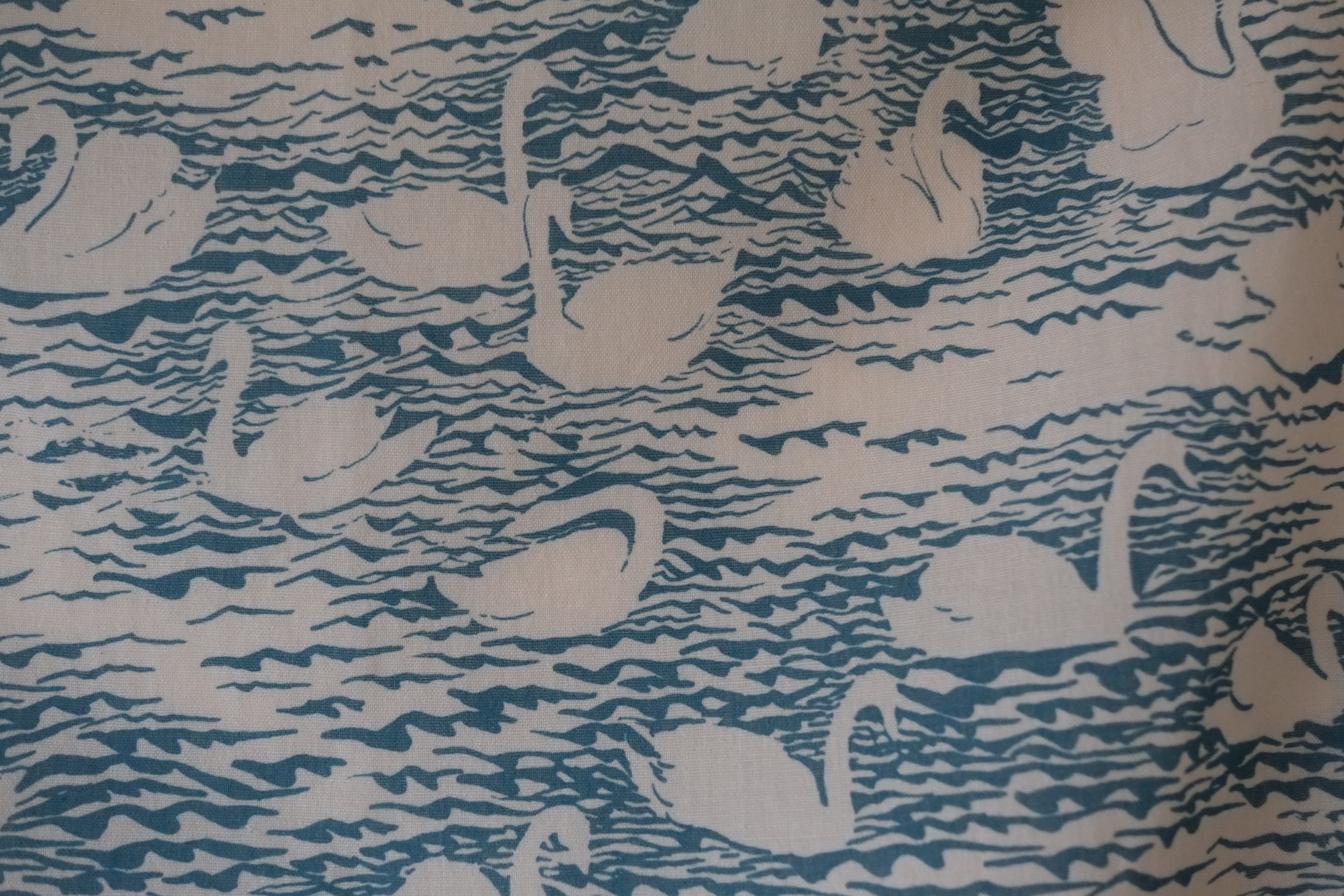 国産織りオーガニックコットンの柔らかな生地にたくさんの白鳥が浮かぶ湖のイメージを染めました。