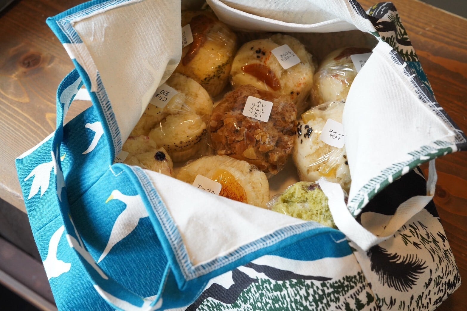 ガバッと開いて蒸しパンもたっぷり入れられて、平らになるので小さく折り畳むこともできます。